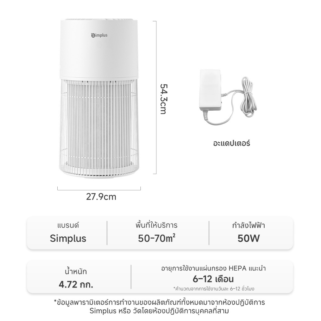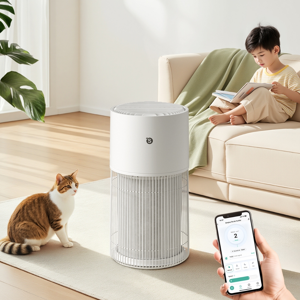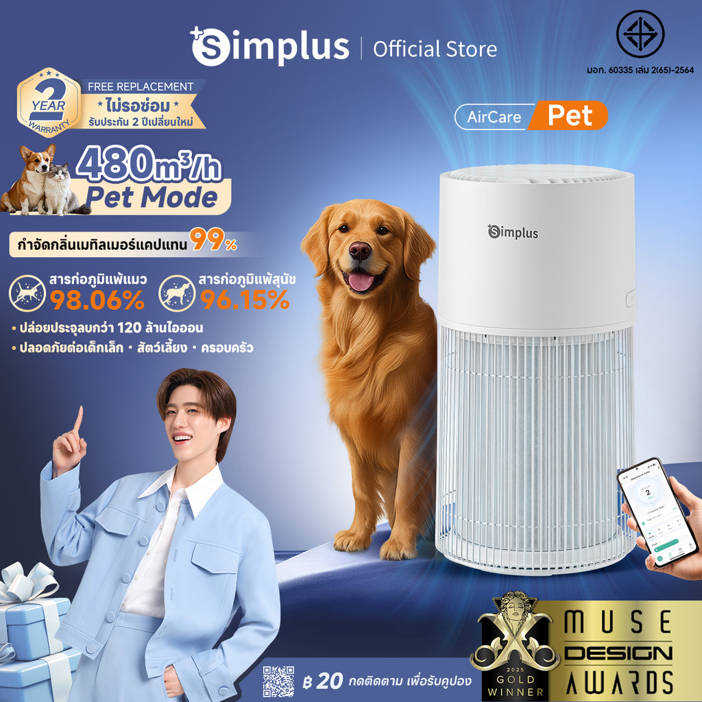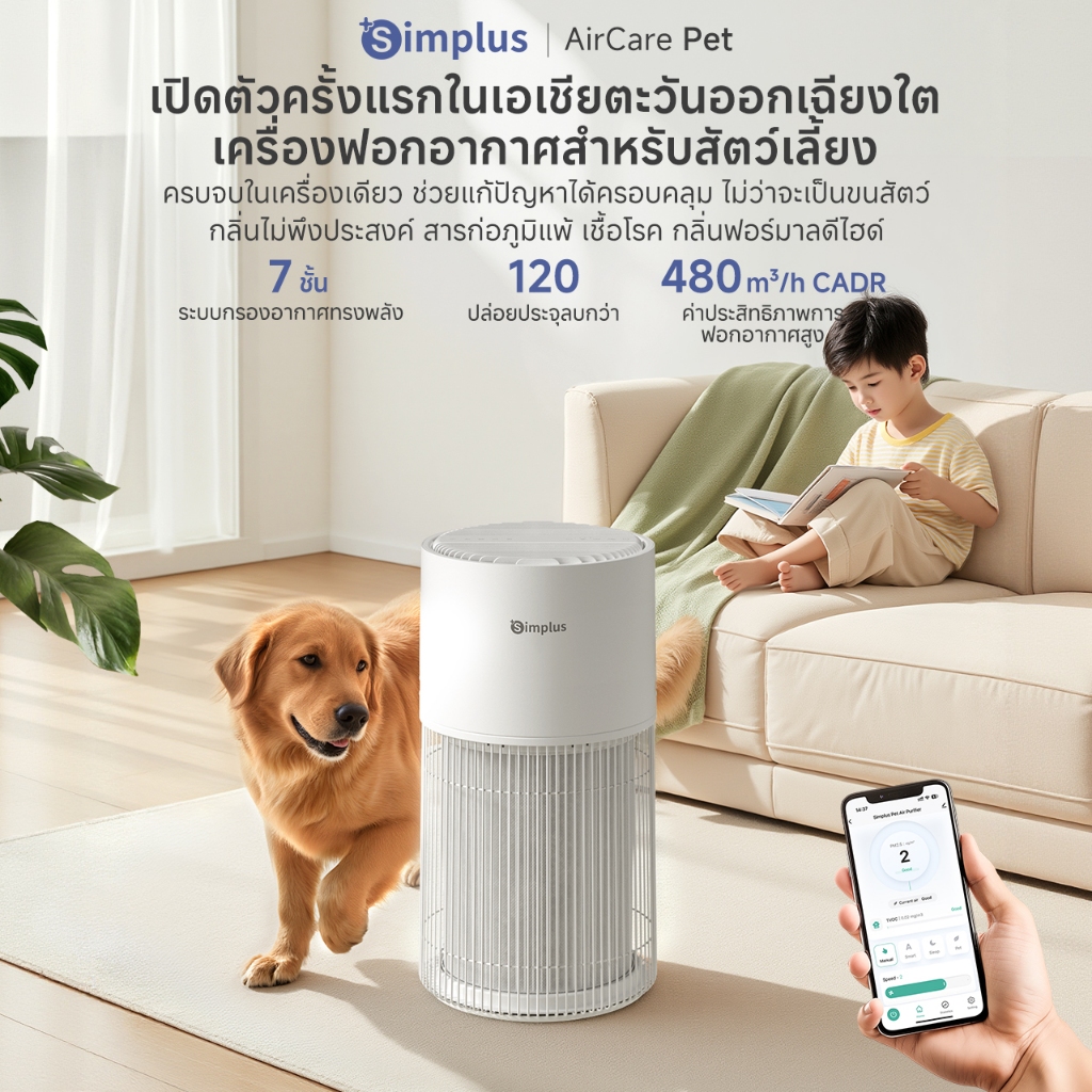 Simplus x PP Krit เครื่องฟอกอากาศสัตว์เลี้ยง CADR 480m³/h 7 ชั้นกรอง ไอออนลบ PM2.5 ควบคุมผ่านแอป AI Mode KQJH010