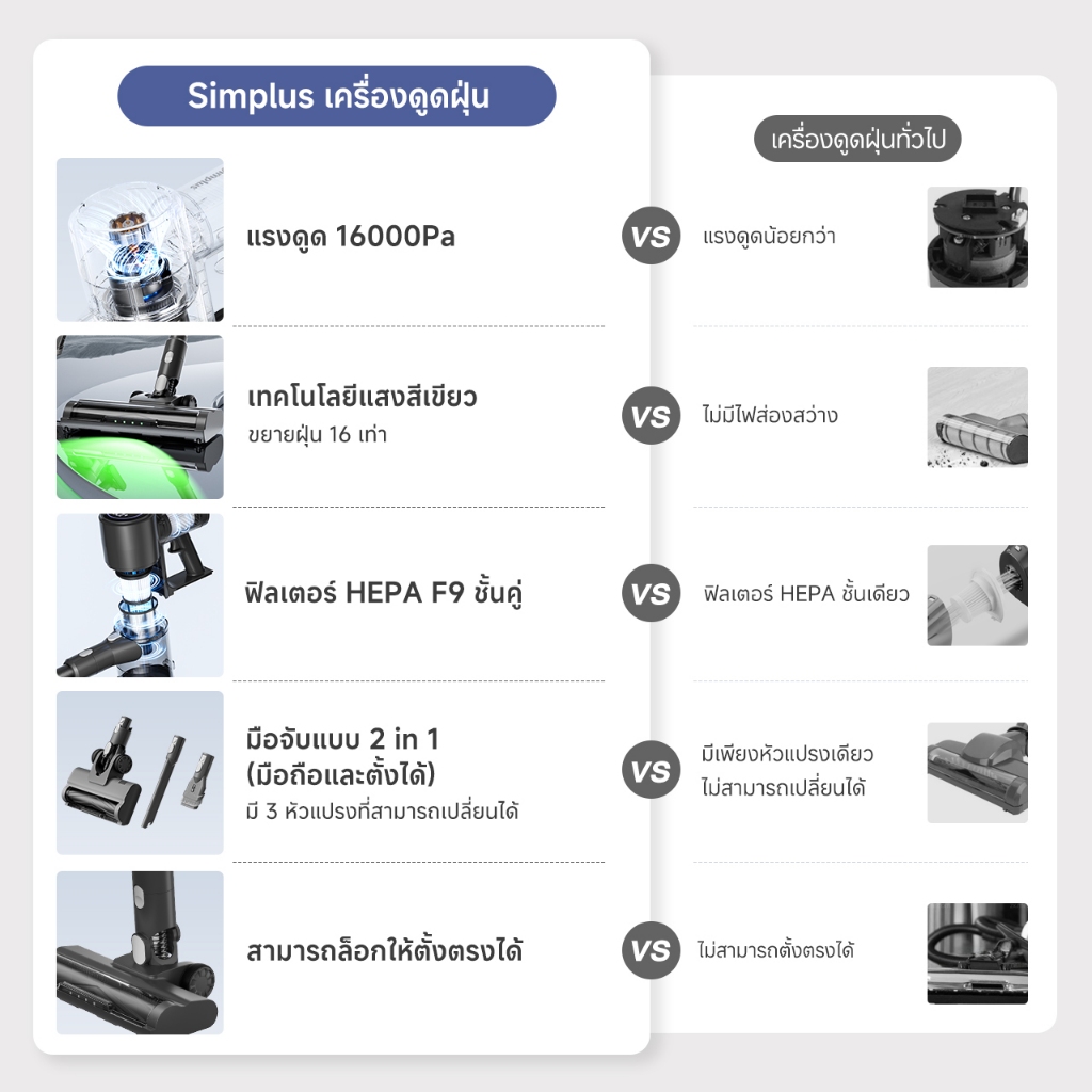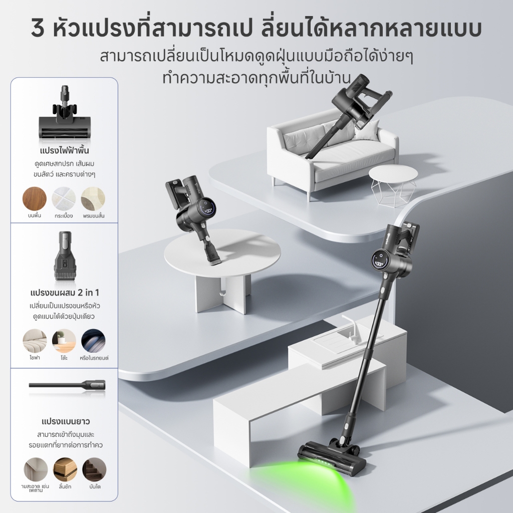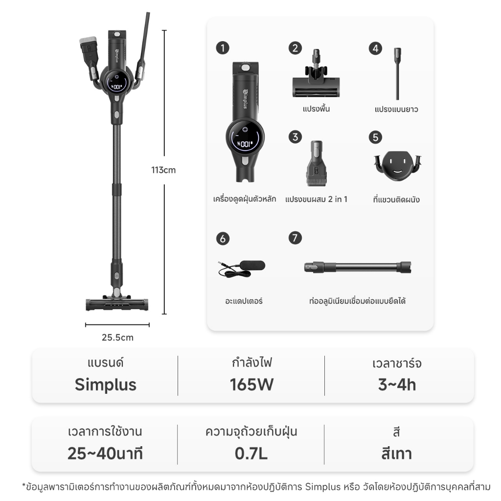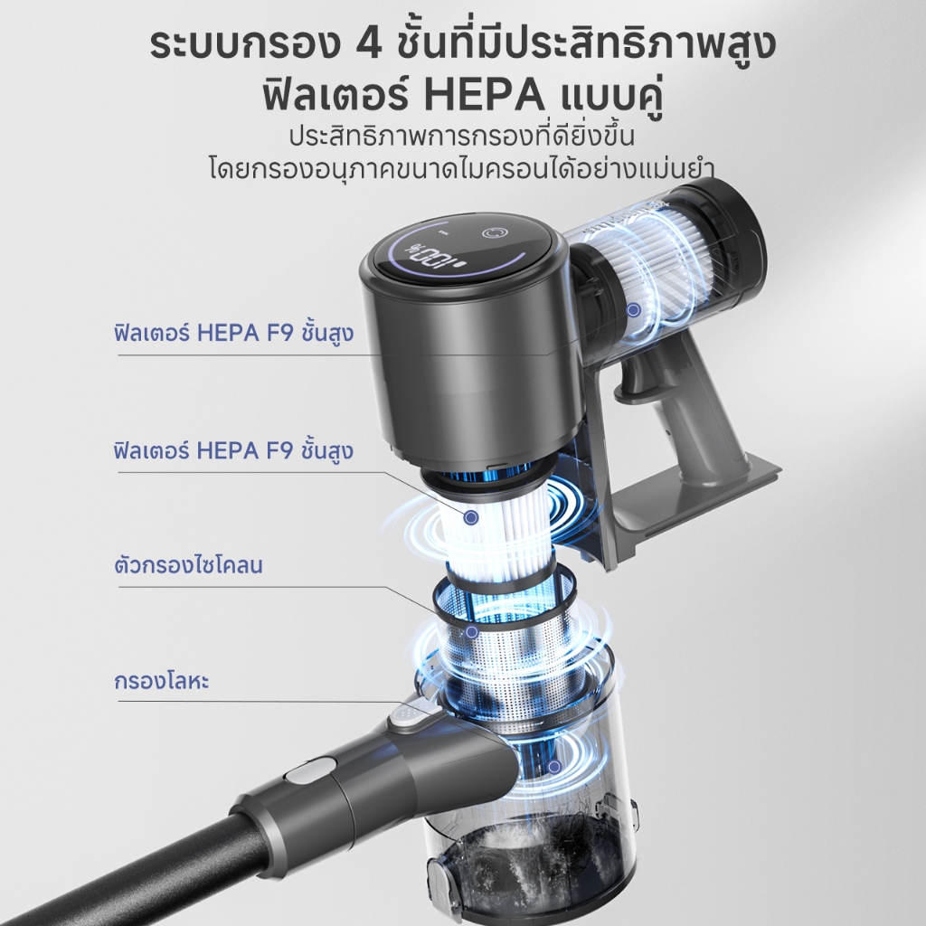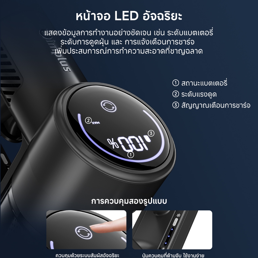 Simplus x PP Kirt เครื่องดูดฝุ่นไร้สาย แรงดูด แรงดูด 17,000Pa ใช้งาน 40 นาที หน้าจอ LED กรอง HEPA 4 ชั้น XCQH017