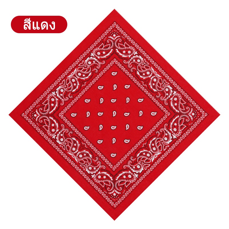 ผ้าเช็ดหน้าวินเทจ ผ้าโผกหัว ผ้าพันคอ Cotton ลายลูกน้ำ paisley ใช้โพกหัวผูกผมชิคๆ