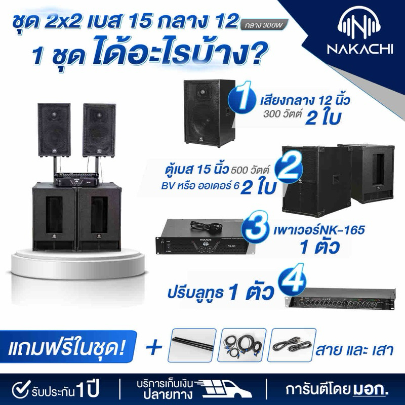 ชุดเครื่องเสียงกลางแจ้ง ลำโพง 15" + เพาเวอร์แอมป์ 2x2 พร้อมส่ง กรุงเทพฯ