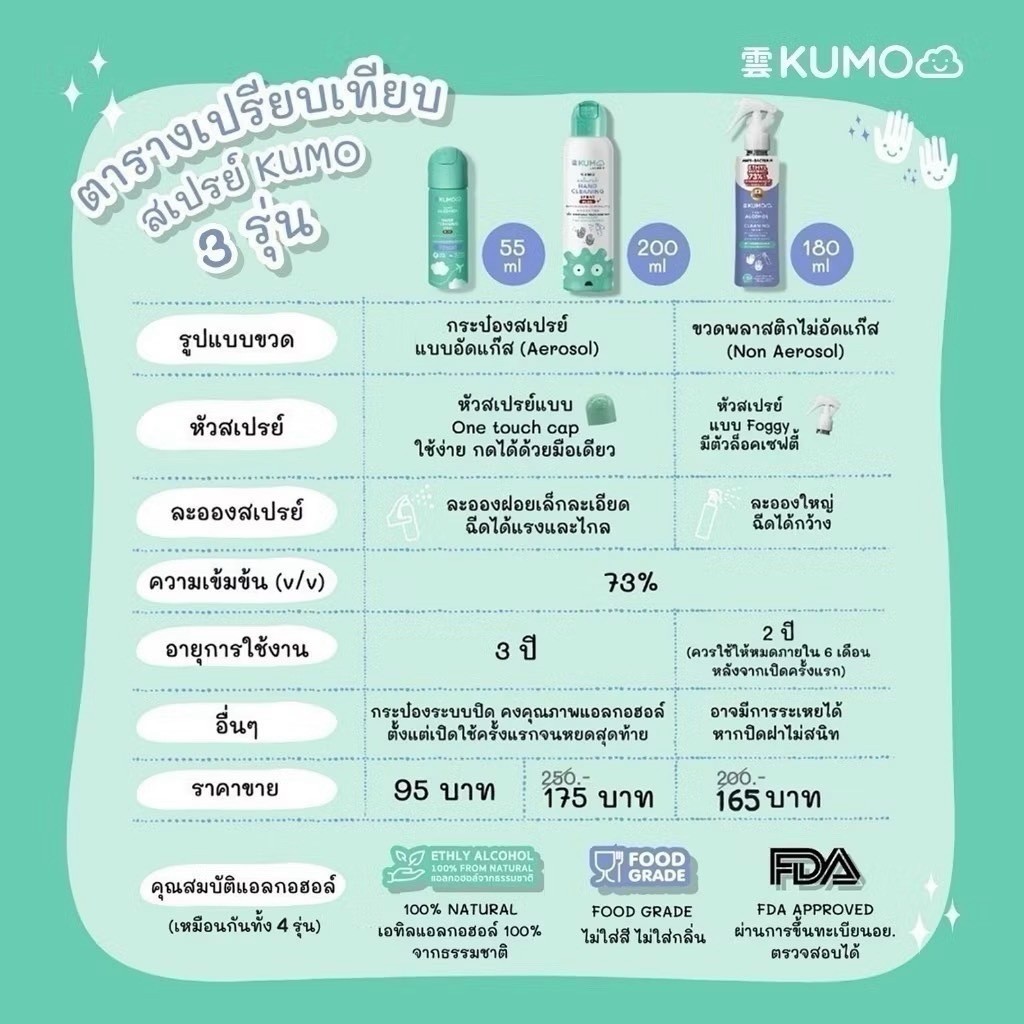 📫ส่งด่วนราคาพิเศษมีจำนวนจำกัด📫KUMO สเปรย์แอลกอฮอล์ 73% ฟู้ดเกรด มาตรฐานญี่ปุ่น แอลกอฮอล์เด็ก