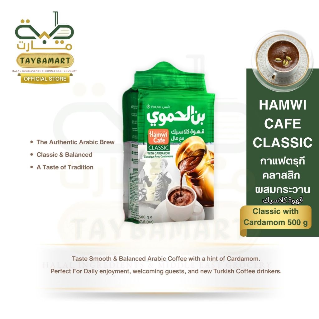 Hamwi Cafe Turkish Coffee กาแฟตุรกี กาแฟอาหรับ 500g (بن الحموي) กาแฟคั่วบดแท้ Middle Eastern Coffee