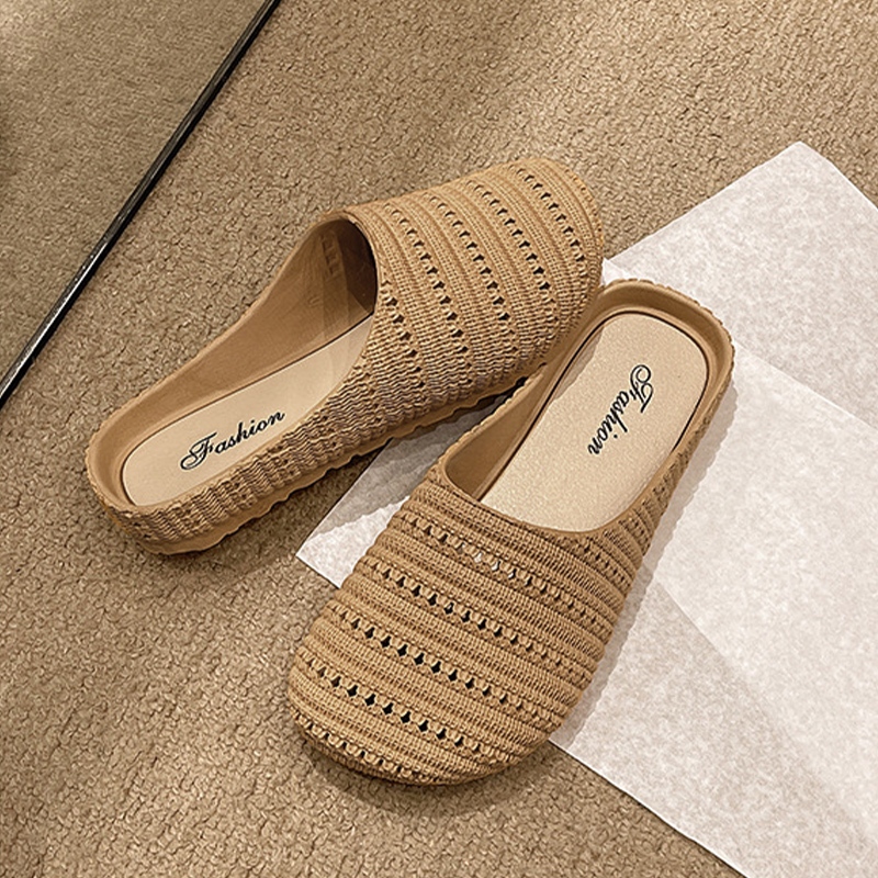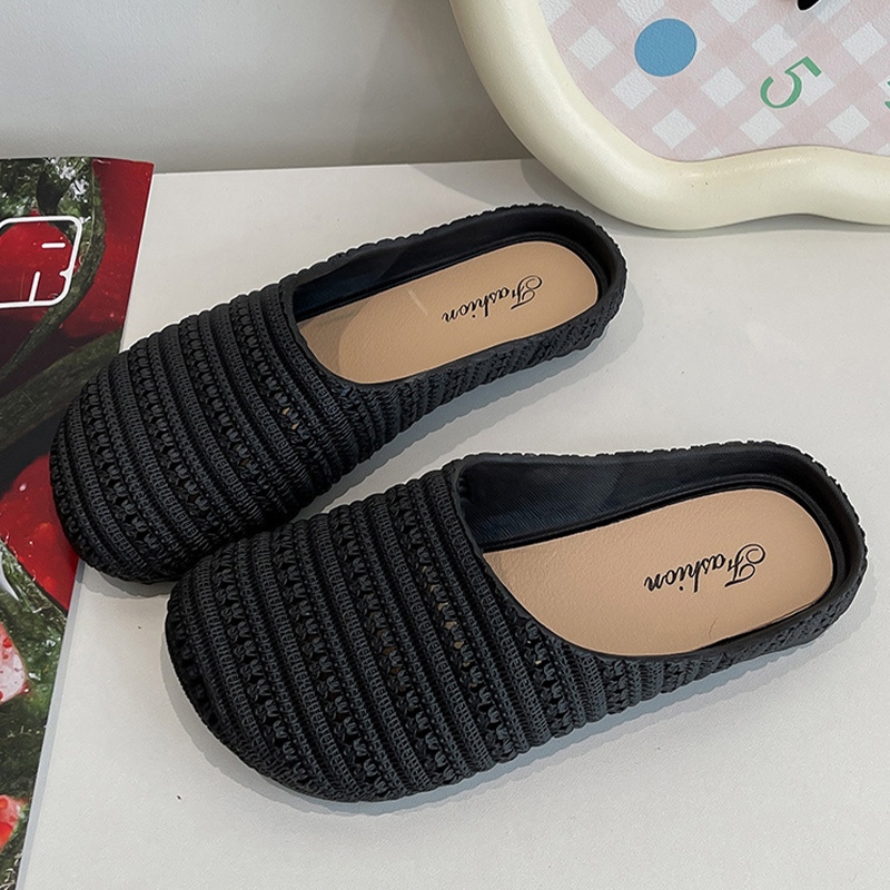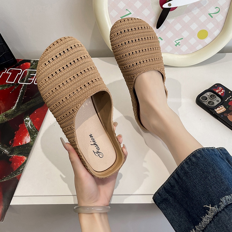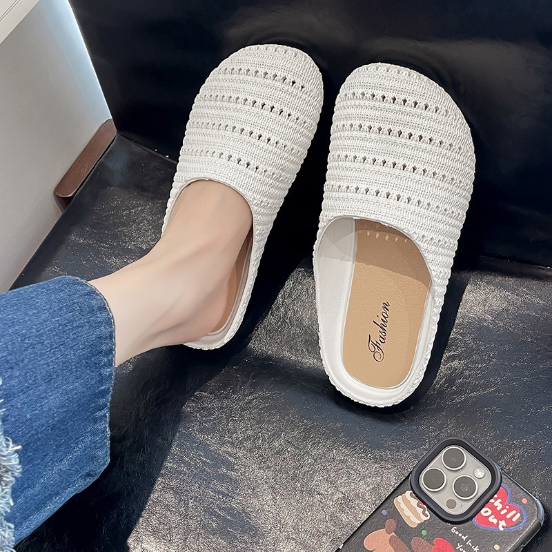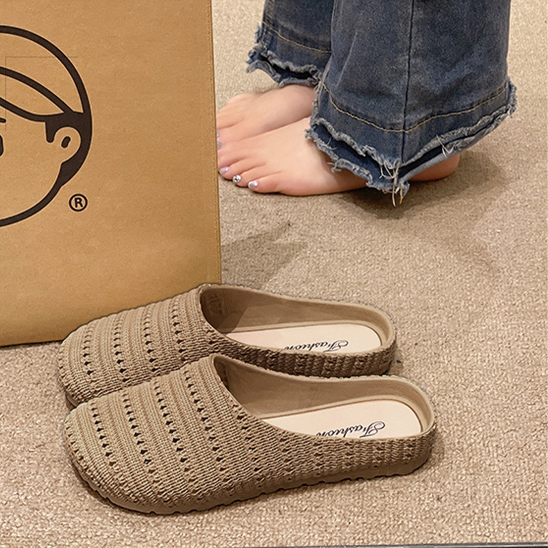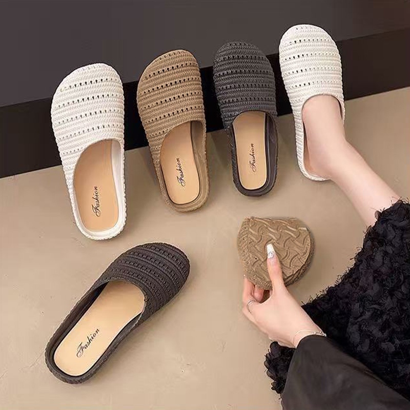 XWshopee รองเท้าแบบสวมเดียวสไตล์ฝรั่งเศส นุ่มนวล ปิดหัว เซมิ เหมาะสวมกลางแจ้ง เรียบง่าย ใช้งานหลายแบบ พื้นนุ่ม
