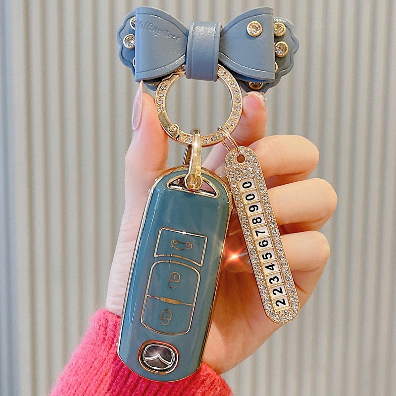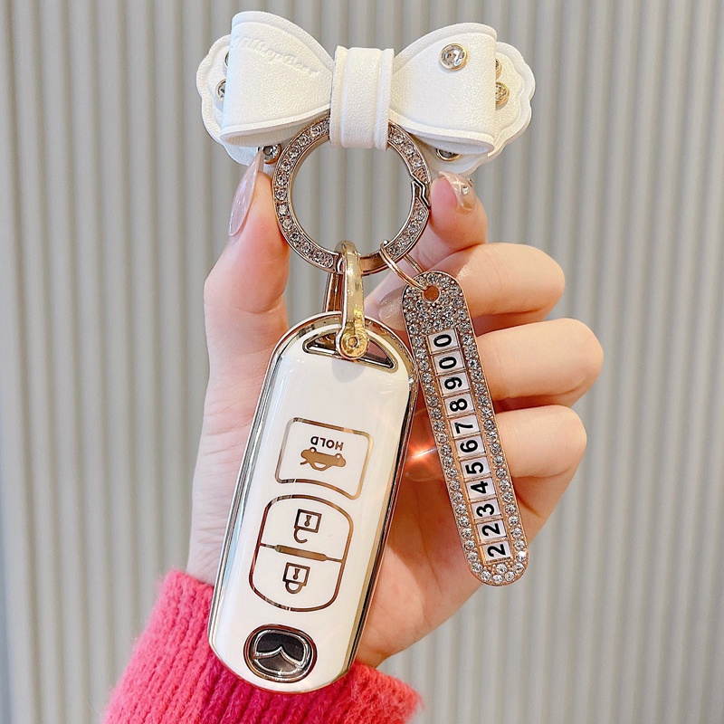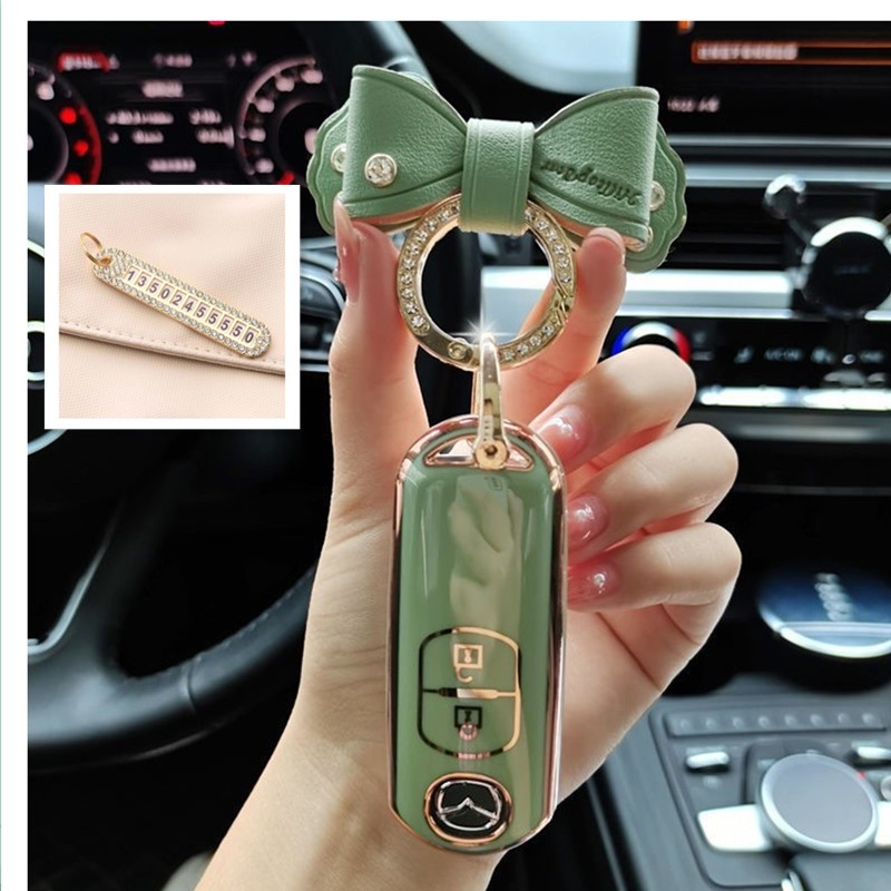 เคสกุญแจรีโมทรถยนต์ TPU 2 ปุ่ม 3 ปุ่ม PC ประดับโบว์ และเพชร สําหรับ mazda 2 mazda 3 mazda 5 mazda 6 BL BM GJ Atenza Axela Mazda CX-3 CX-5 CX-7 CX-9 CX5 CX7 CX9 CX3 Mazda CX 5 CX 5