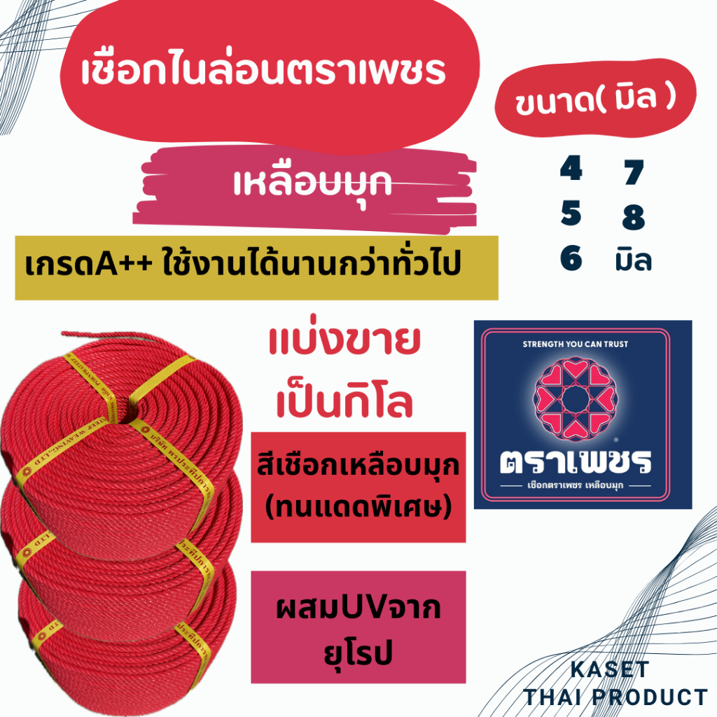 (แบ่งขายเป็นกิโล) เชือกไนล่อนตราเพชรเหลือบมุก ทนแดดเป็นพิเศษ ของแท้ เกรดA++ใช้งานได้ยาวนานกว่าทั่วไป