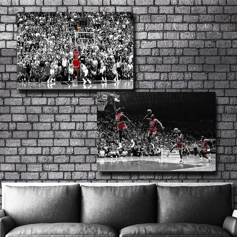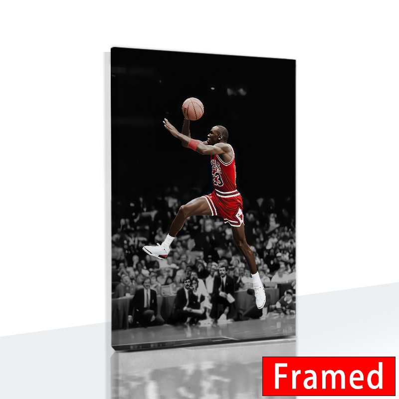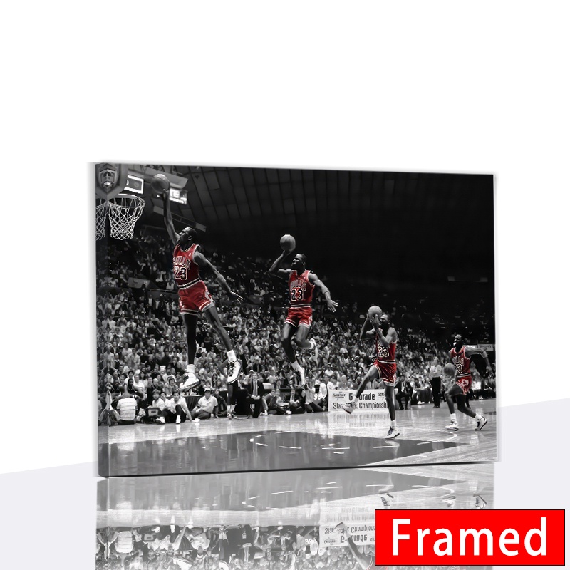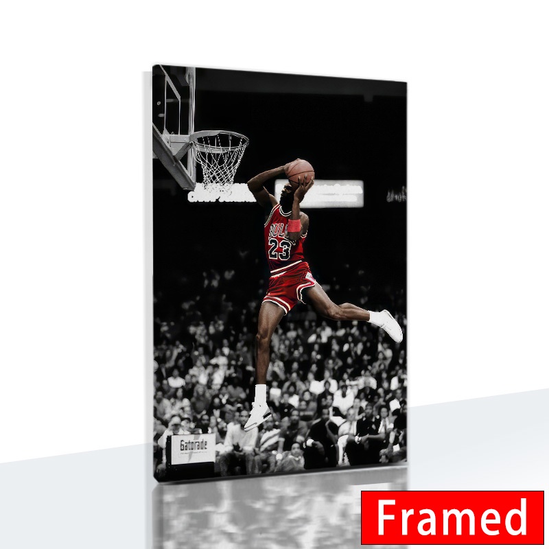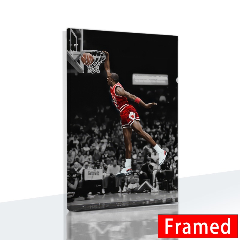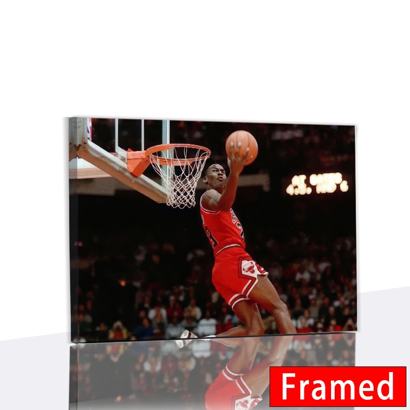 (พร้อมกรอบ) โปสเตอร์ผ้าใบ พิมพ์ลาย Michael Jordan Bulls Flying Dunk สําหรับตกแต่งผนังบ้าน ห้องนอนเด็ก