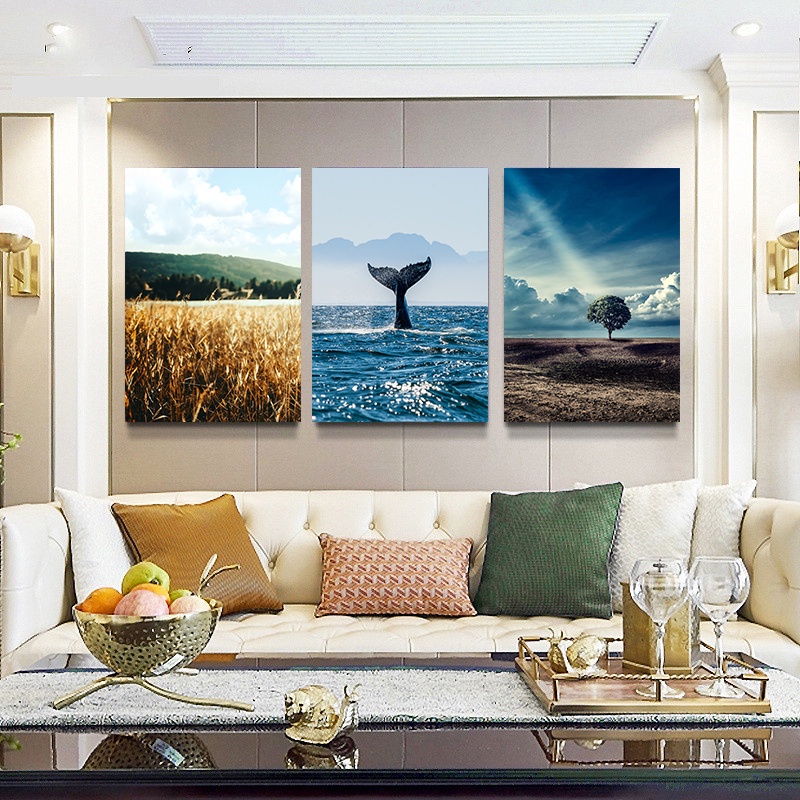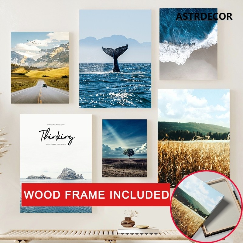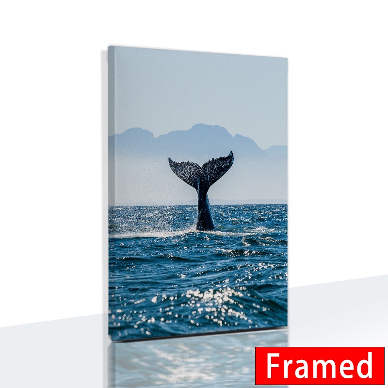 (พร้อมกรอบ ) ภาพโปสเตอร์ รูปหางปลาวาฬ สีทอง สําหรับตกแต่งผนังบ้าน ห้องนั่งเล่น