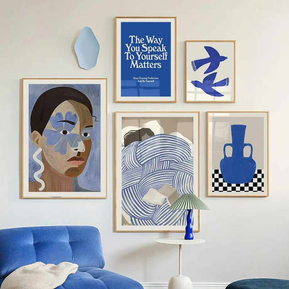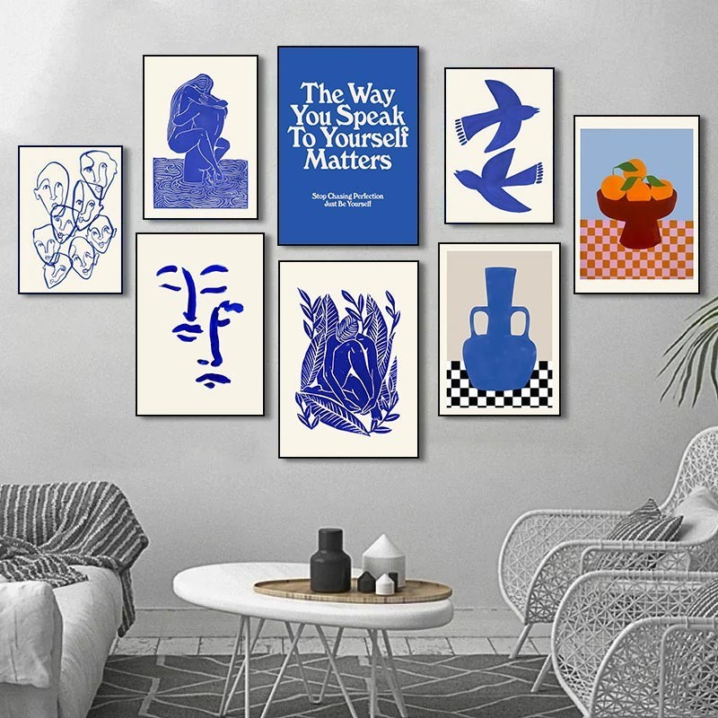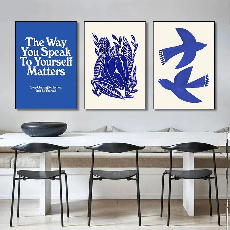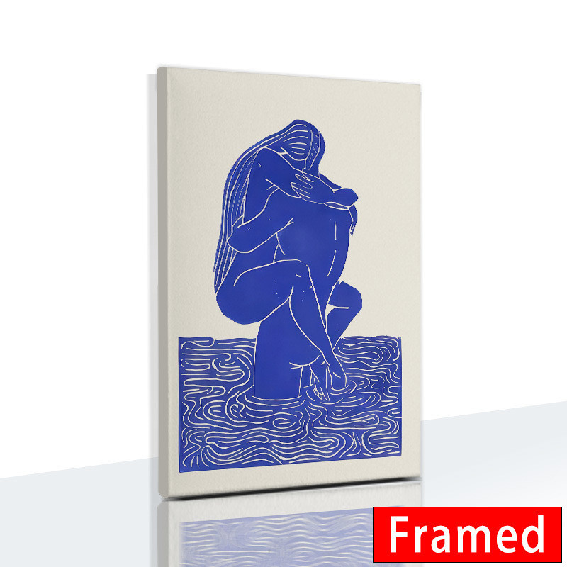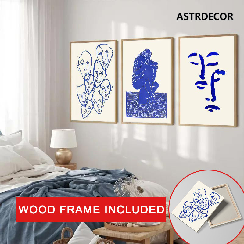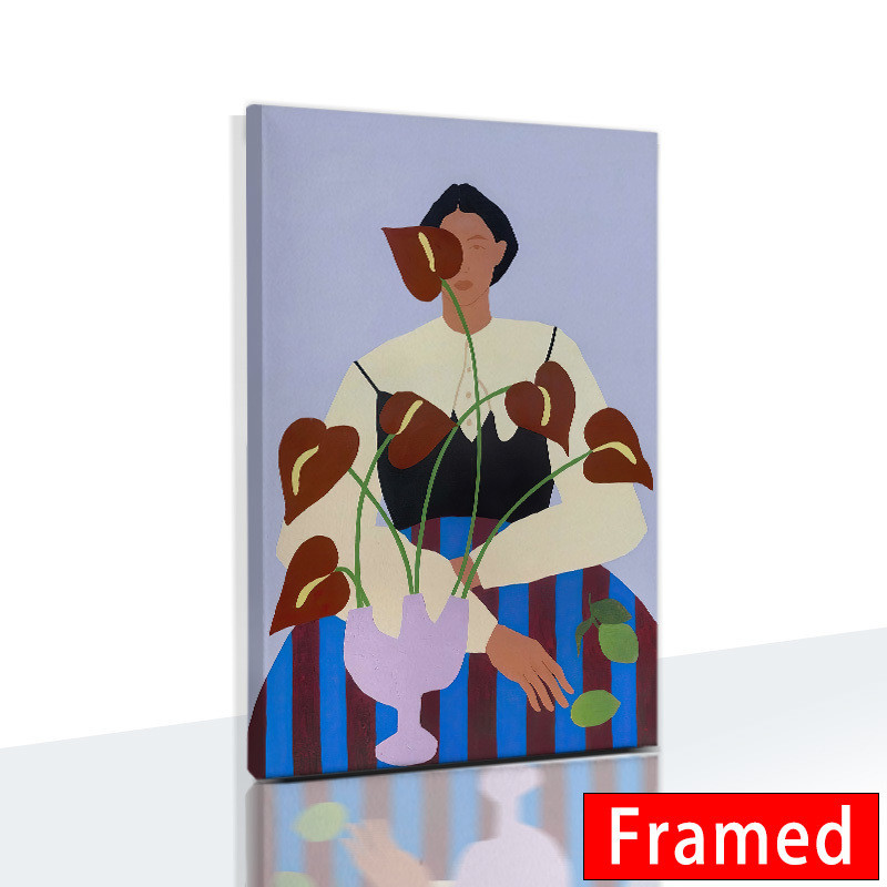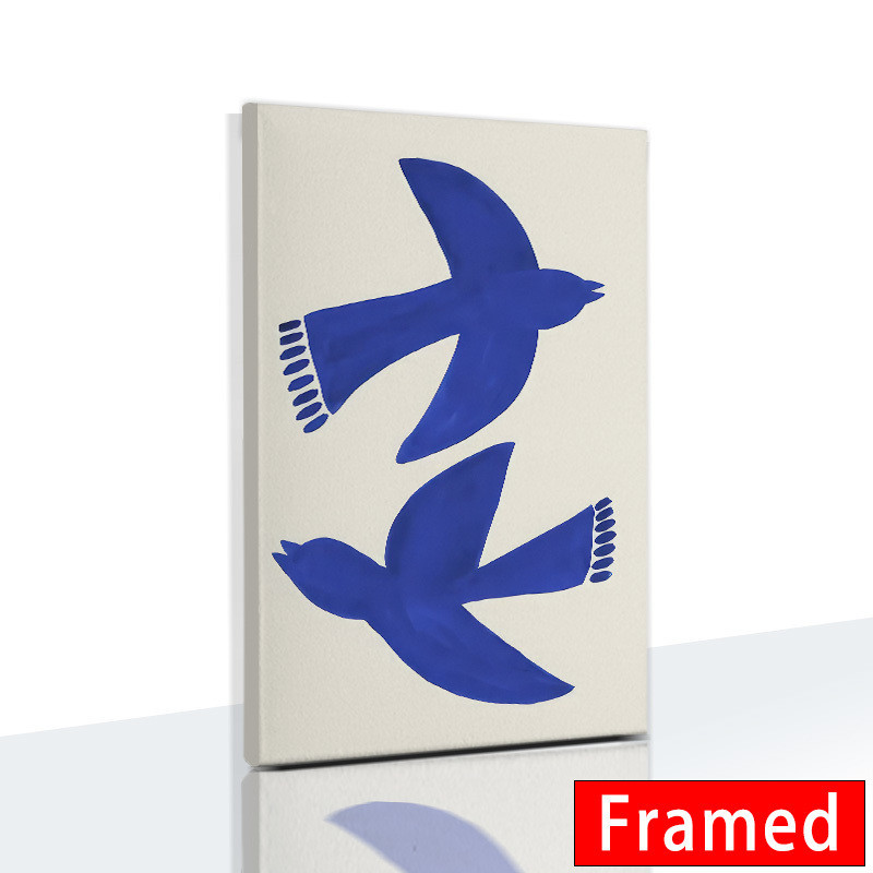 (พร้อมกรอบ) ภาพวาดผ้าใบ รูปแจกันนกพิราบ สีฟ้า สไตล์โมเดิร์น พร้อมกรอบรูปผู้หญิง สําหรับตกแต่งผนัง ห้องนั่งเล่น