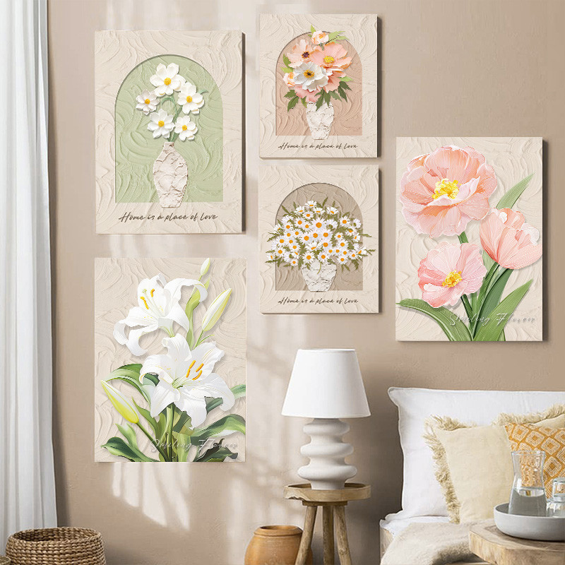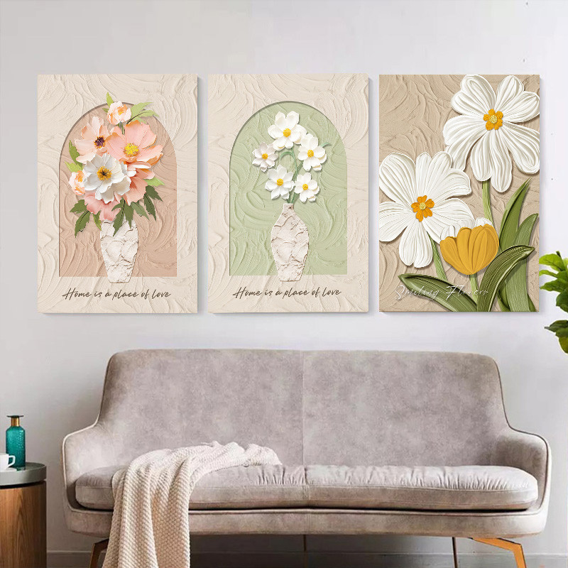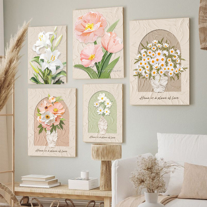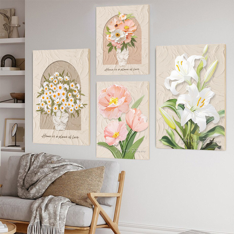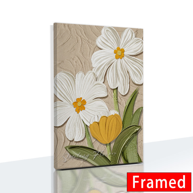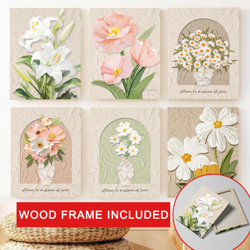(พร้อมกรอบ) กรอบไม้เนื้อแข็งตกแต่งผนังภาพวาดบทคัดย่อลายดอกไม้สไตล์นอร์ดิกสําหรับตกแต่งบ้านห้องนั่งเล่น