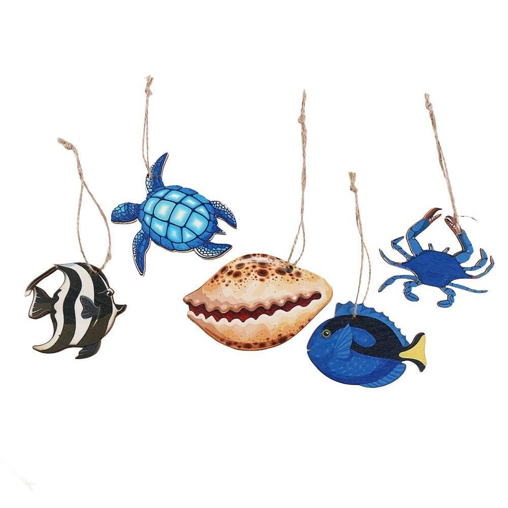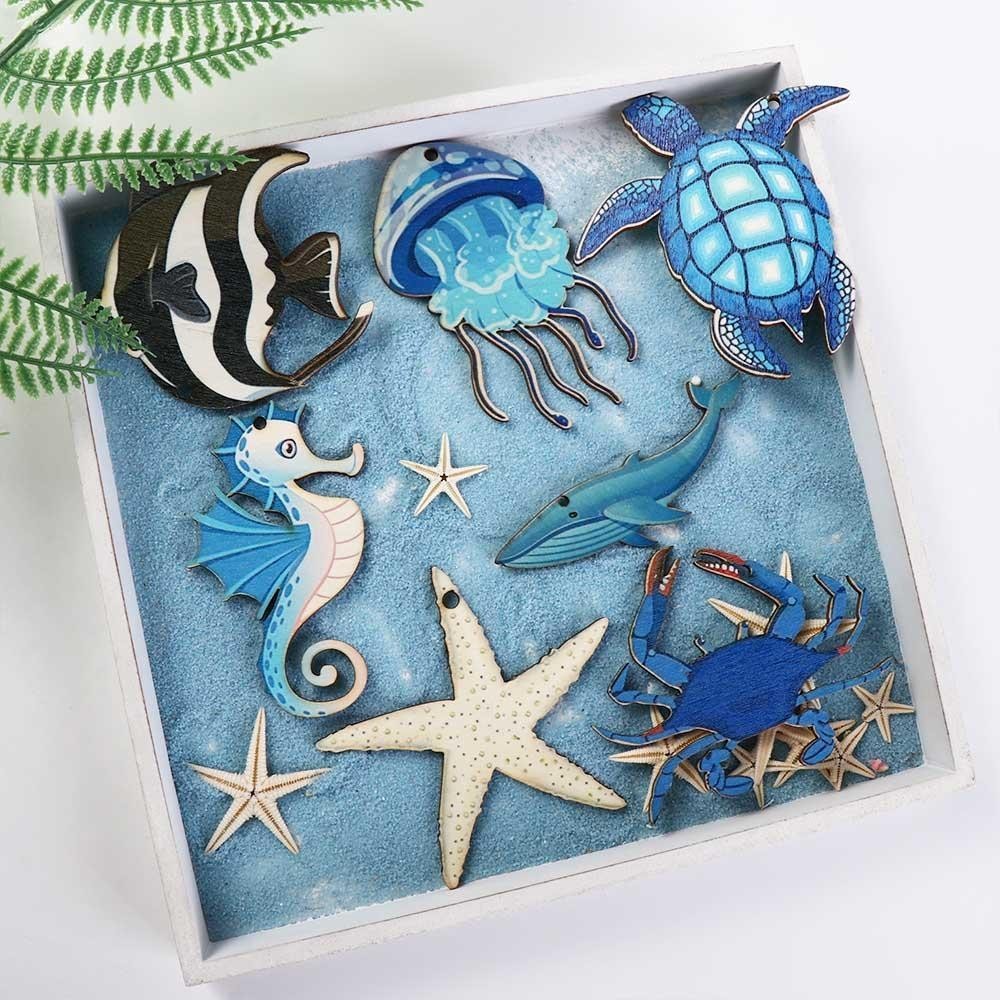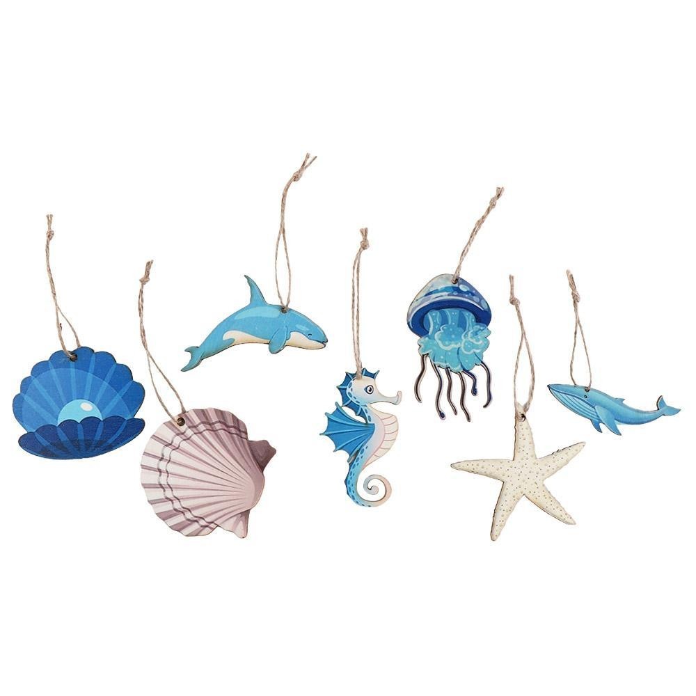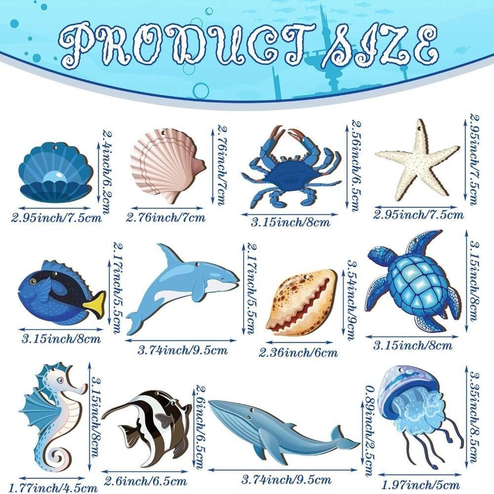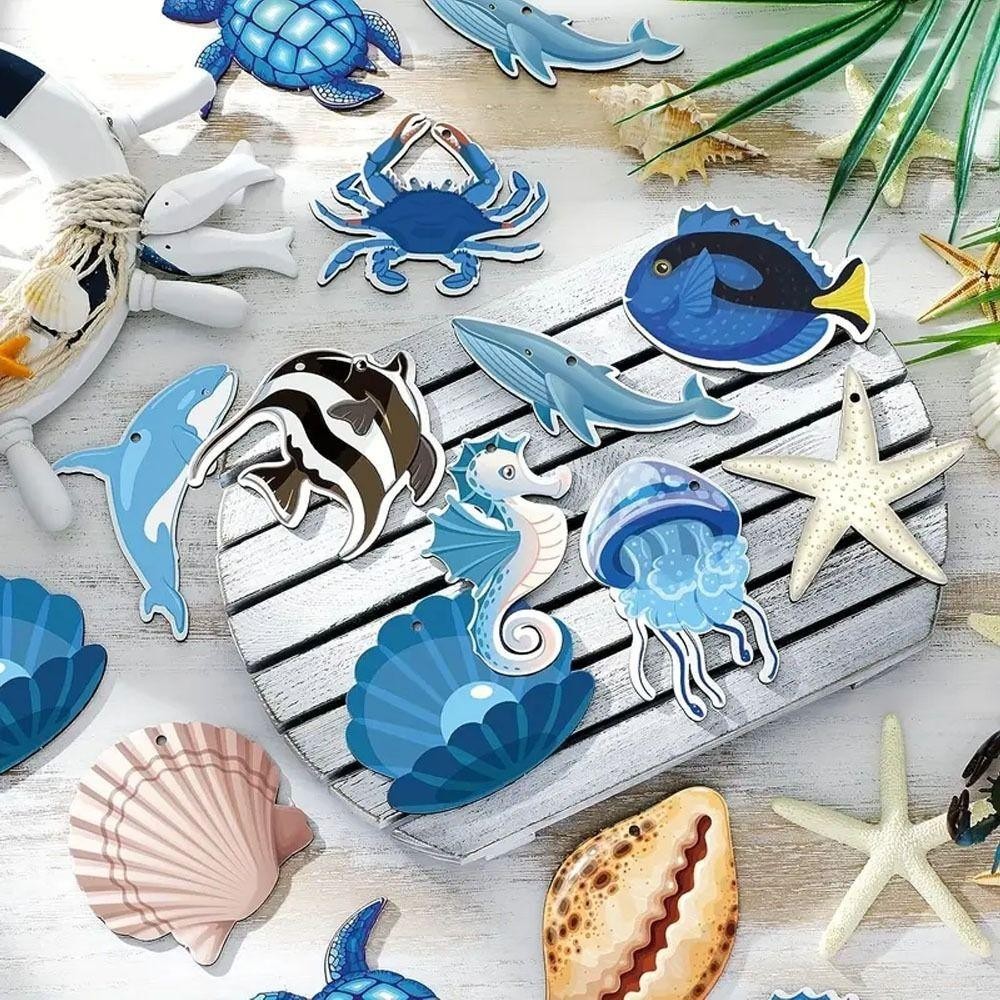 [COD] 24pcs Ocean Animal แขวนเครื่องประดับ, ปลาดาวไม้เปลือกหอย Ocean Themed จี้, Beach แขวนตกแต่งเต่า Seahorse DIY Ocean Theme Sea Life Decor Hawaiian Party
