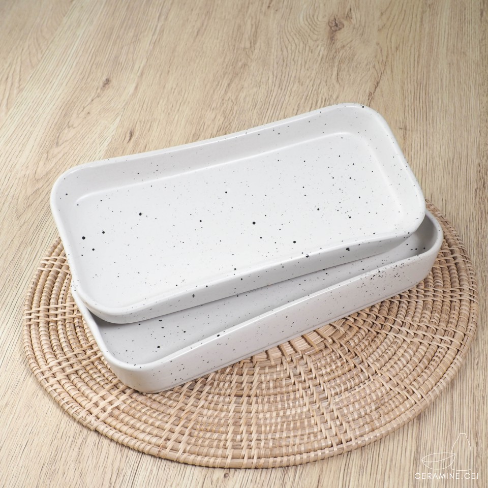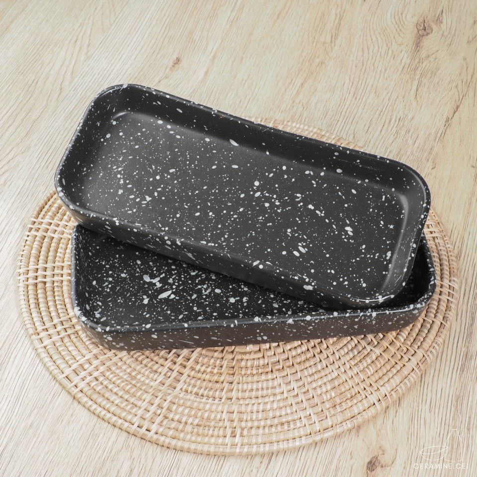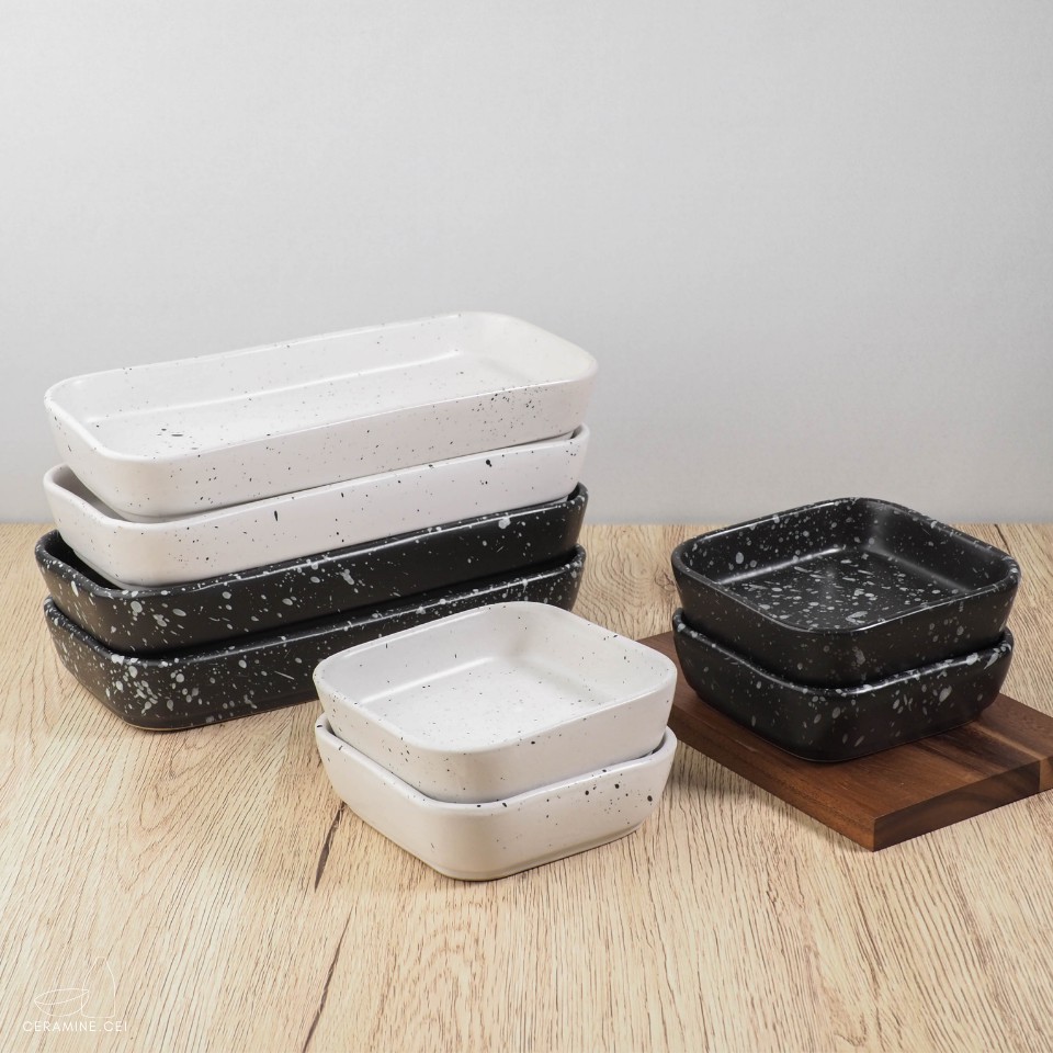 Stone Collection ถาดเซรามิคสไตล์มินิมอล รุ่นขอบตั้ง ทรงสี่เหลี่ยม เข้าไมโครเวฟได้