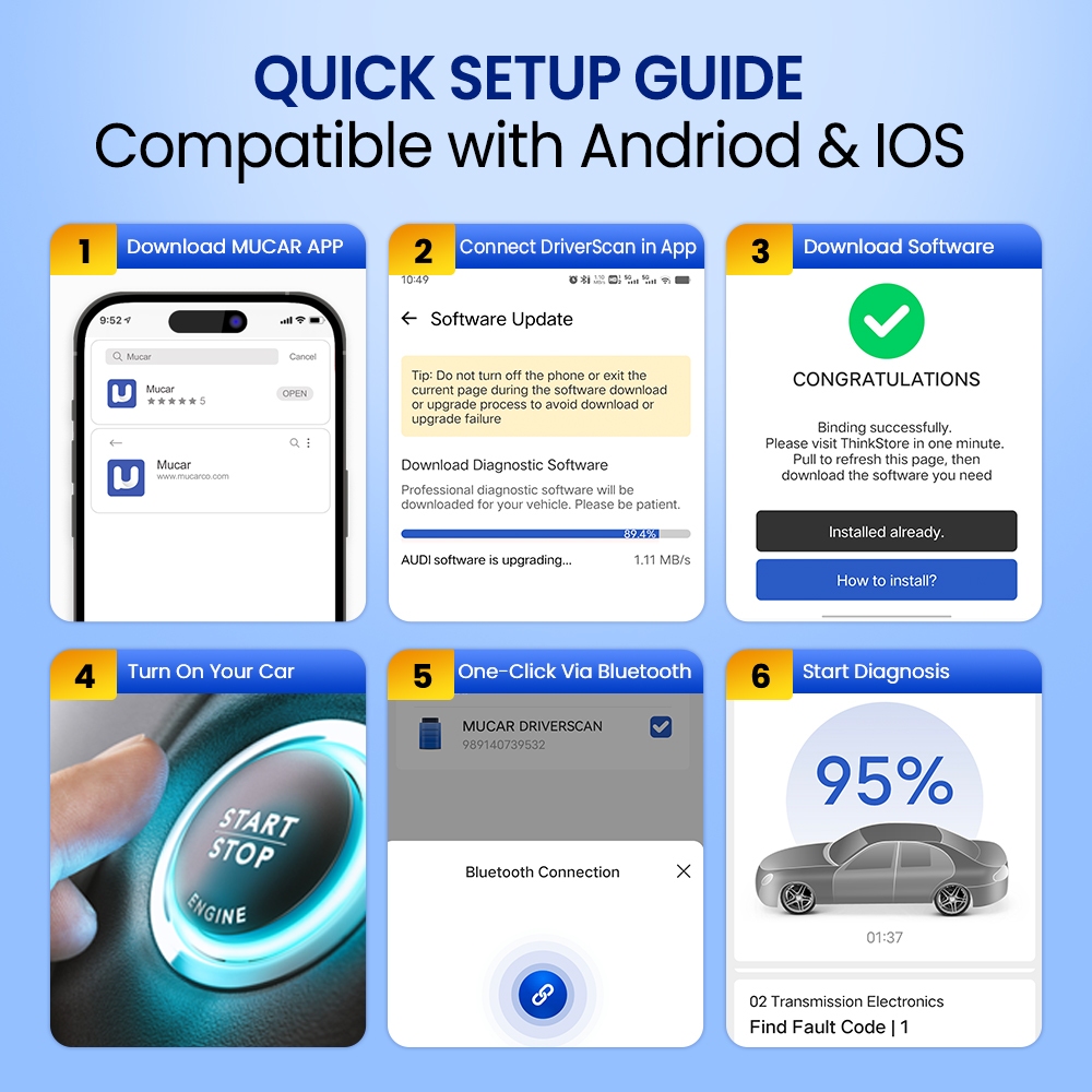 .ผลิตภัณฑ์ใหม่ Mucar DriverScan Auto OBD2 เครื่องมือวินิจฉัยระบบทั้งหมดการวินิจฉัยการควบคุมแบบสองทิศทางทดสอบที่ใช้งานน้ํามัน SAS 15 รีเซ็ตสําหรับรถยนต์ทั้งหมด