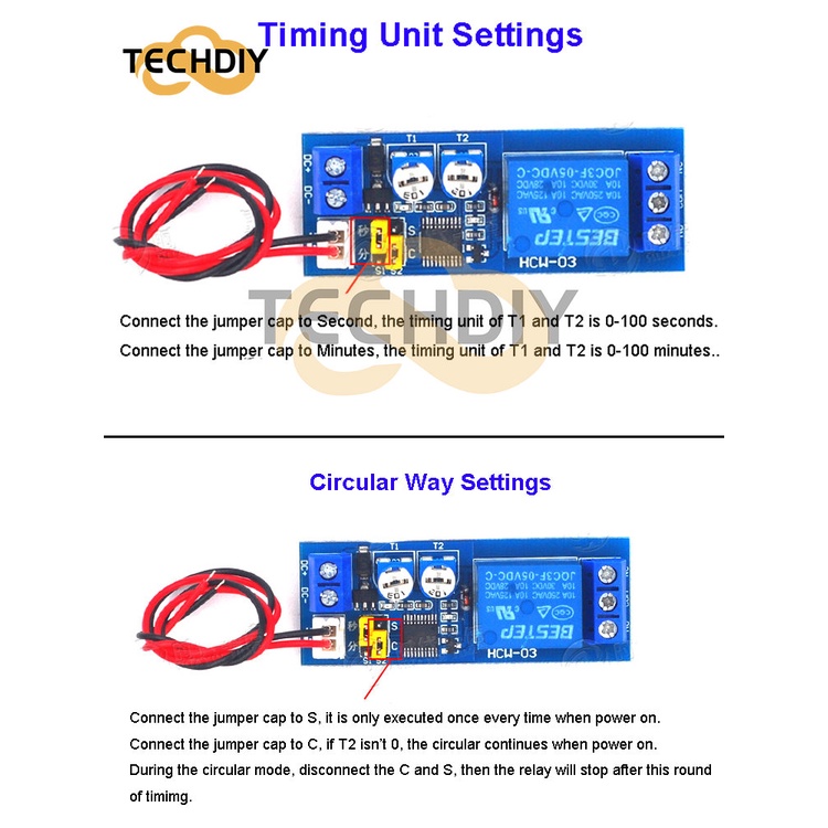 Dc 5V 12V 24V วงจรหน่วงเวลา รีเลย์เวลา รีเลย์ตั้งเวลา ควบคุม เปิด - ปิด โมดูลสวิตช์ ห่วง ปรับได้สองเท่า 0-100 นาที