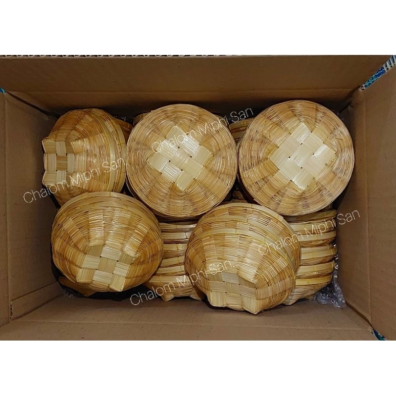 กระจาดสาน กระจาดสานไม้ไผ่ ตะกร้าสาน ชุดจัดเบรค แพ็ค 10 ใบ