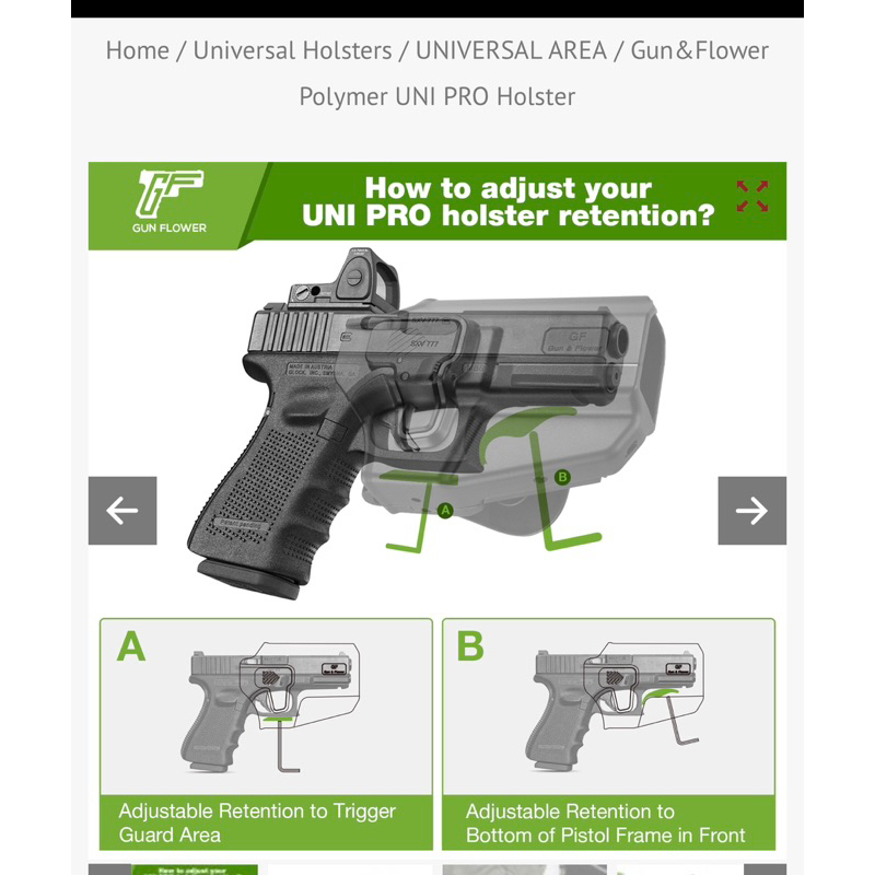 ซองพกนอก GF Uni proใส่ปืuได้หลายรุ่น ตาม ตารางแนบ (มือขวา-ซ้าย)