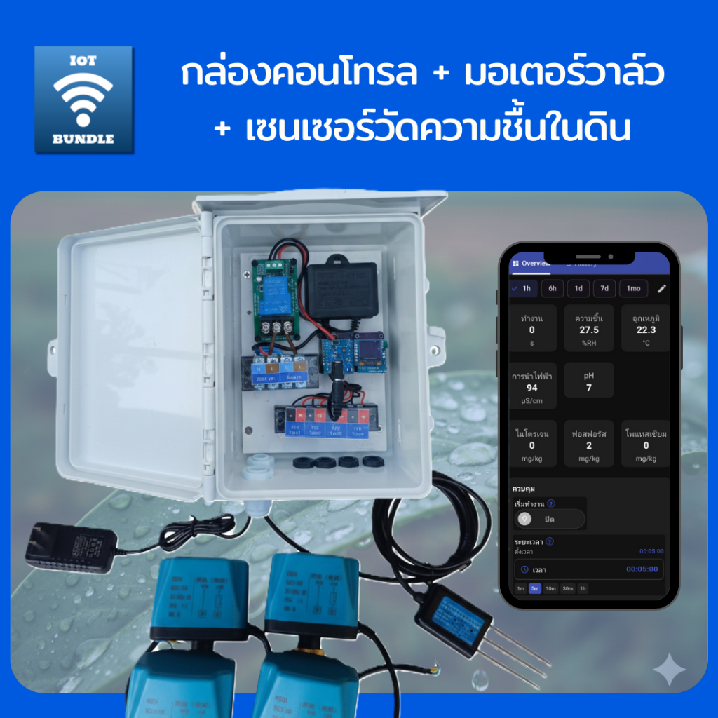 ตู้คอนโทรลปั๊มน้ำออนไลน์สำเร็จรูป Cynoiot Smart Farm สั่งผ่านแอปมือถือ แบ่งโซน ตั้งเวลาได้ เซนเซอร์วัดความชื้นดิน