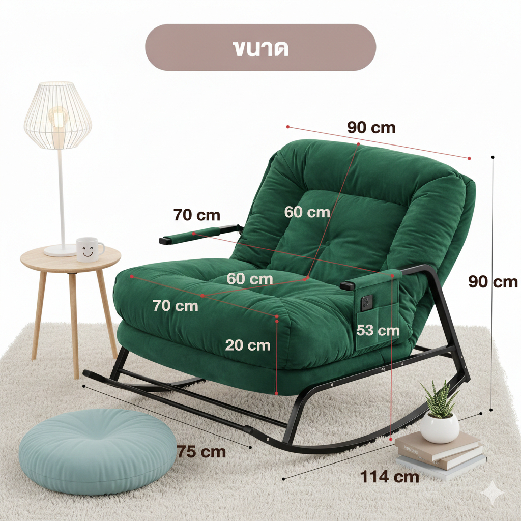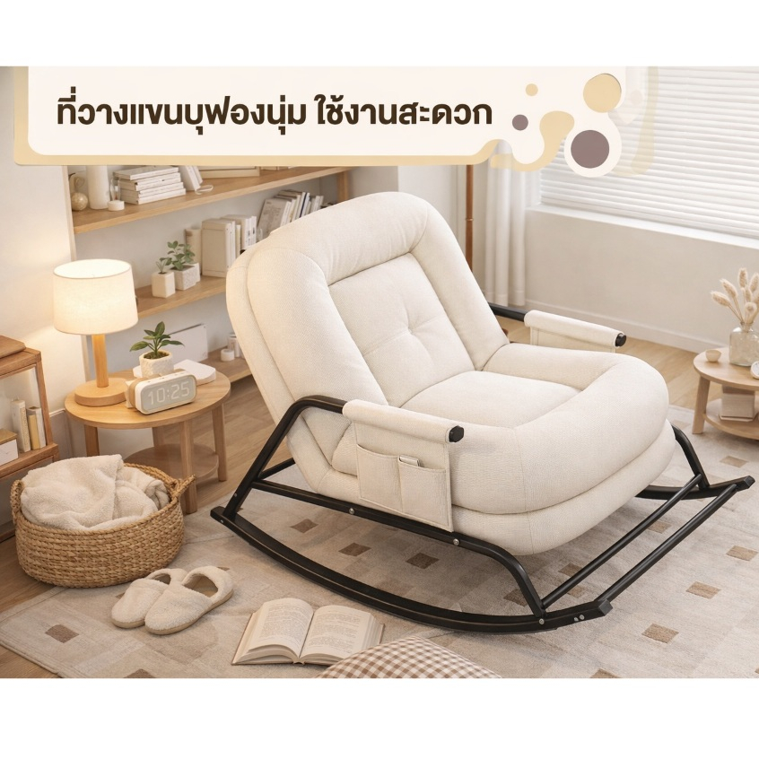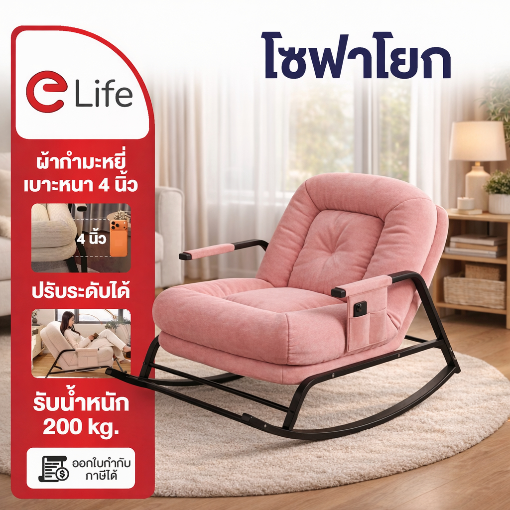 Elife โซฟาโยก ปรั บเบาะได้ เบาะหนา นุ่ม 15ซม. นั่งสบาย โซฟา โยกได้ โซฟาปรับนอน อ่านหนังสือ เก้าอี้โยก