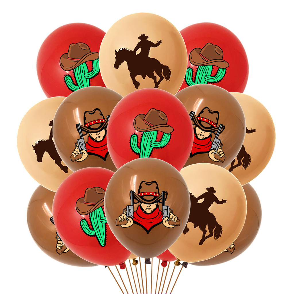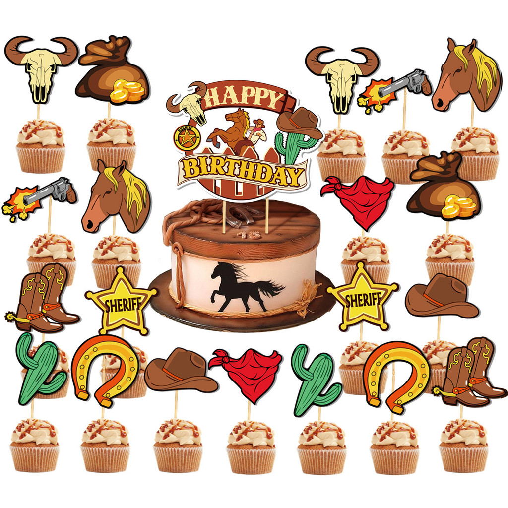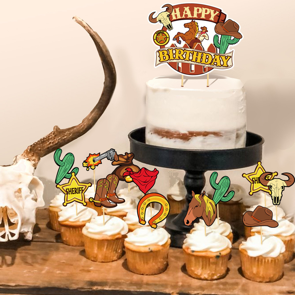 ธีมคาวบอยของตกแต่งงานเลี้ยงวันเกิดสําหรับเด็กแบนเนอร์เค้กท็อปเปอร์บอลลูนชุดอุปกรณ์