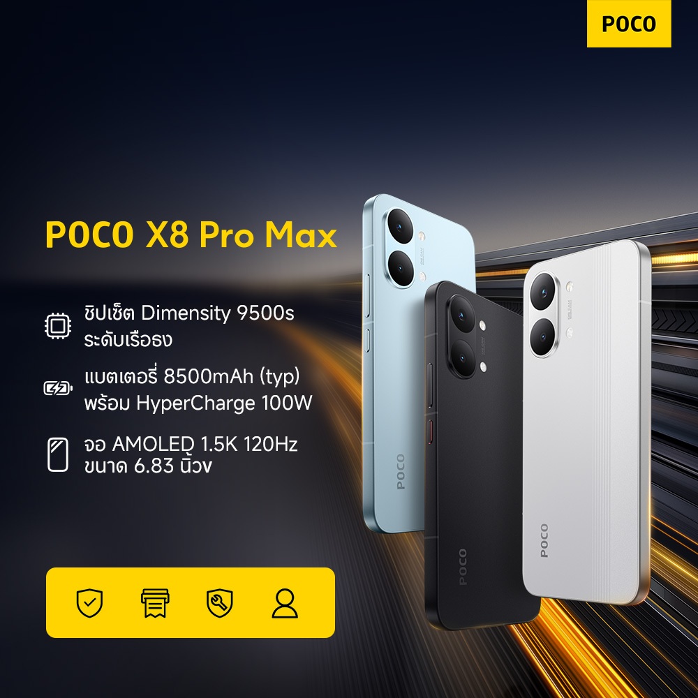 [New] POCO X8 Pro Max 12+256/12+512 ชิปเซ็ต Dimensity 9500s ระดับเรือธง