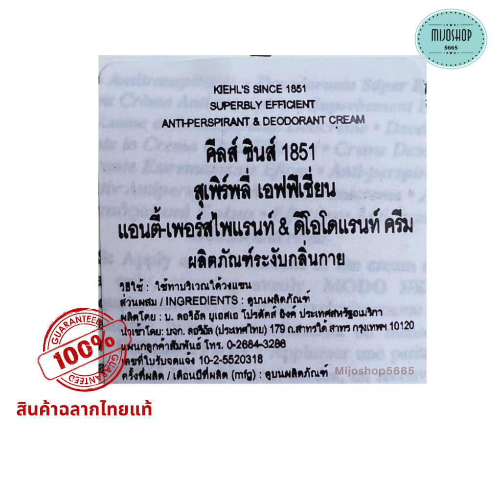 KIEHL'S SUPERBLY EFFICIENT ANTI-PERSPIRANT & DEODORANT CREAM 75ml คีลส์ สุเพิร์พลี่ ขจัดกลิ่นตัว
