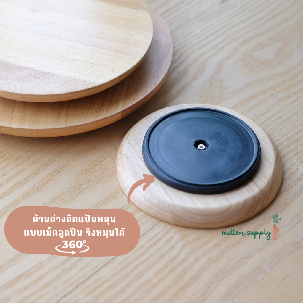 lazy susan wooden turn table แป้นหมุน จานหมุน ไม้ ยางพารา food grade วางอาหาร ขนม พิซซ่า เค้ก โชว์สินค้า เสิร์ฟ พร้อมส่ง