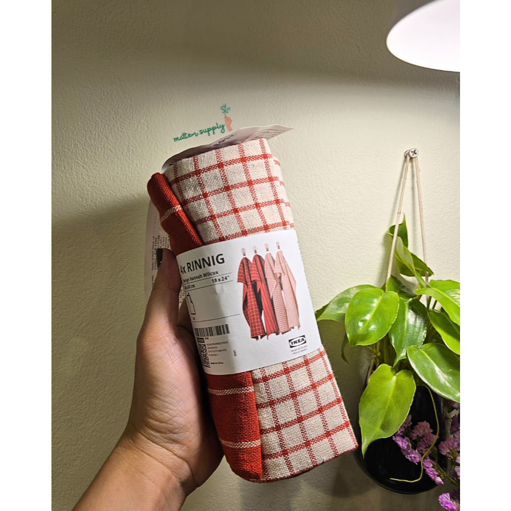 RINNIG ผ้าเช็ดจาน คละลาย 45x60 ซม. ผ้าฝ้าย 100% ซักเครื่องได้ IKEA 1ชุด ได้4ผืน สินค้าพร้อมส่ง