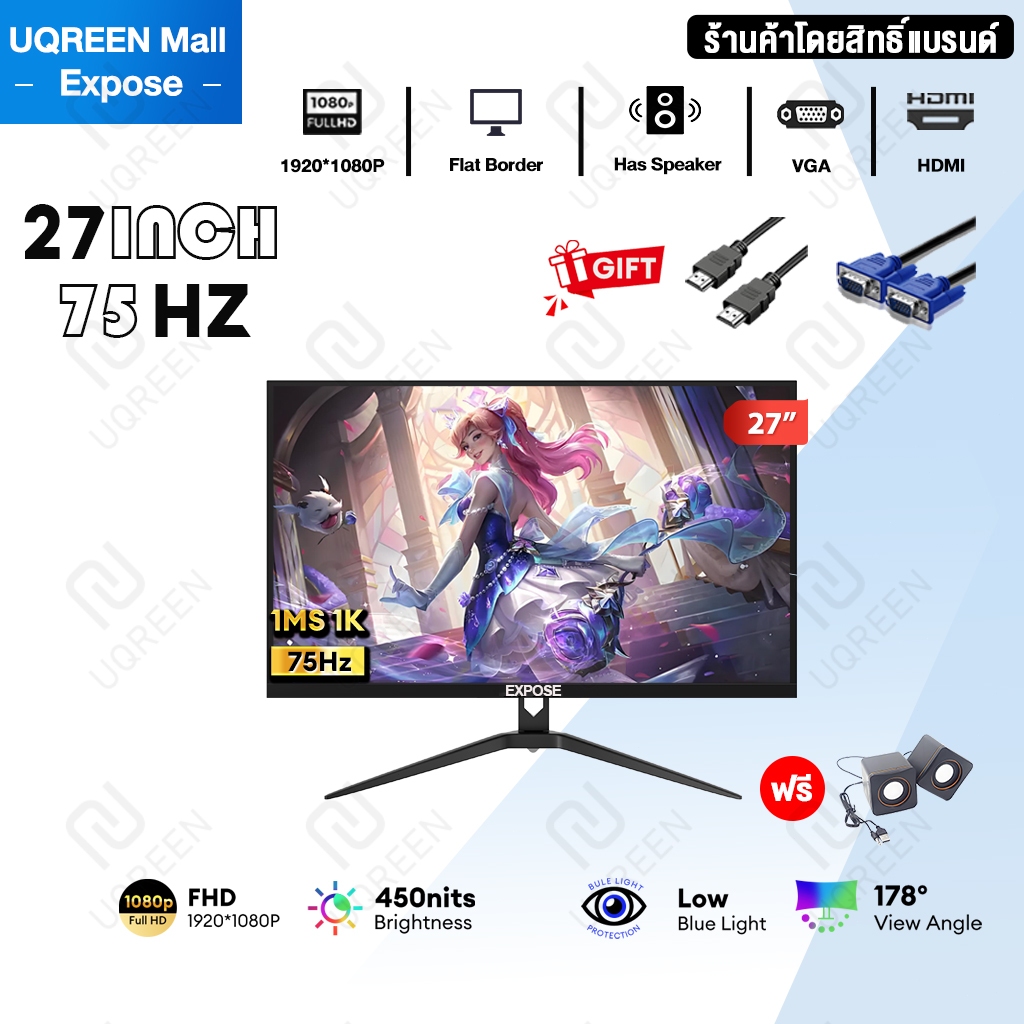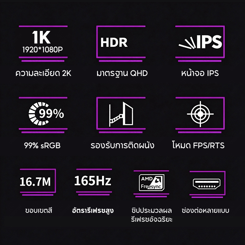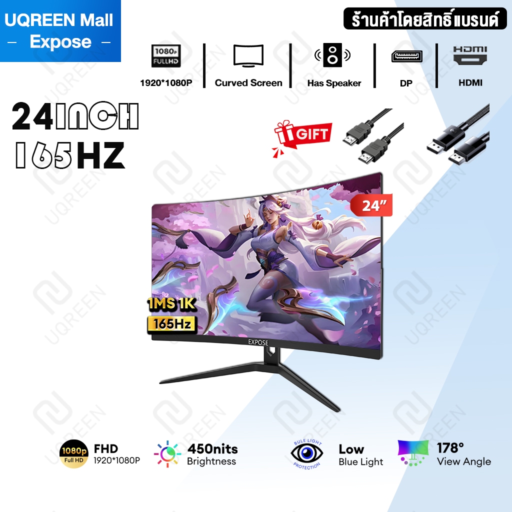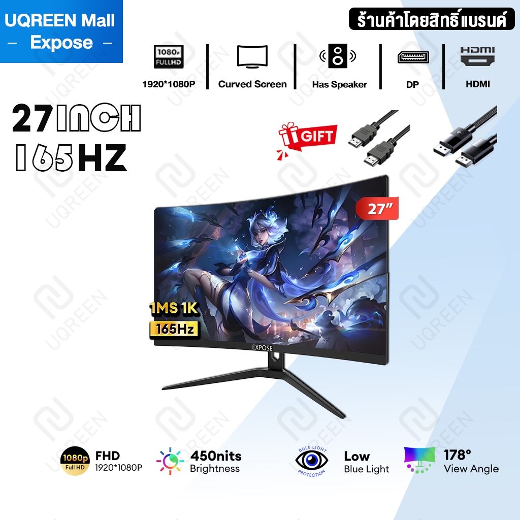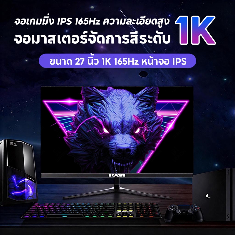 จอคอมพิวเตอร์ 27 นิ้ว 165hz จอคอม monitor 24 นิ้ว จอโค้ง 2K FHD IPS 1MS เต็มจอไร้ขอบ LED