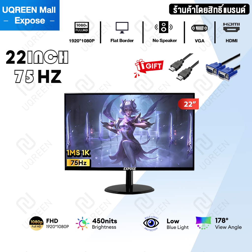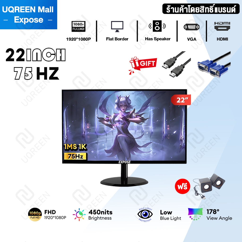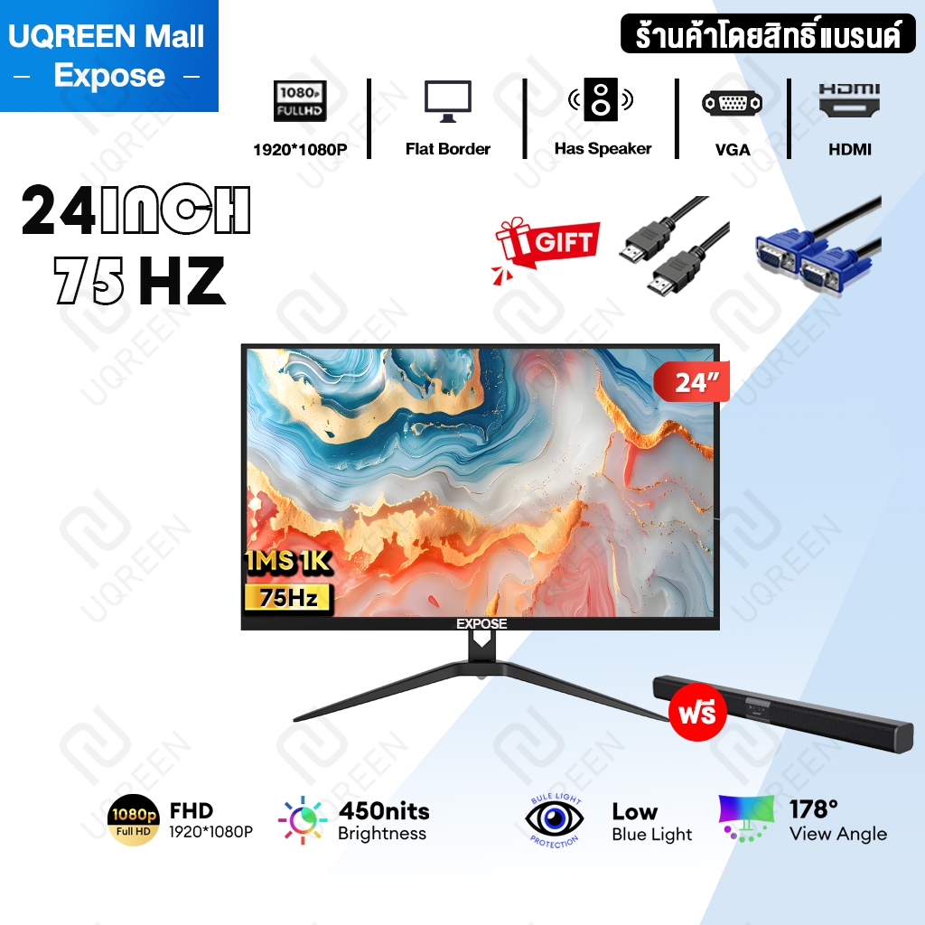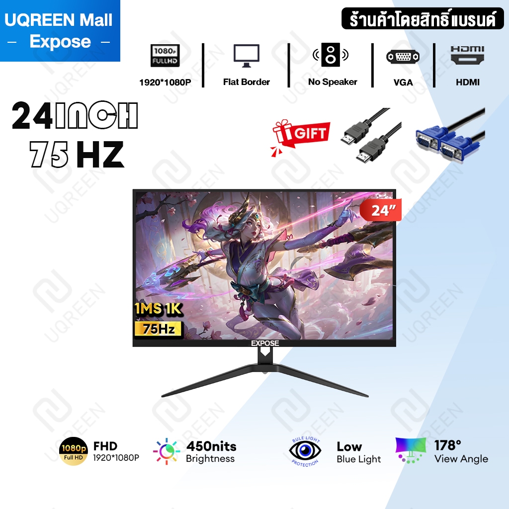 จอคอมพิวเตอร์ 27 นิ้ว 165hz จอคอม monitor 24 นิ้ว จอโค้ง 2K FHD IPS 1MS เต็มจอไร้ขอบ LED