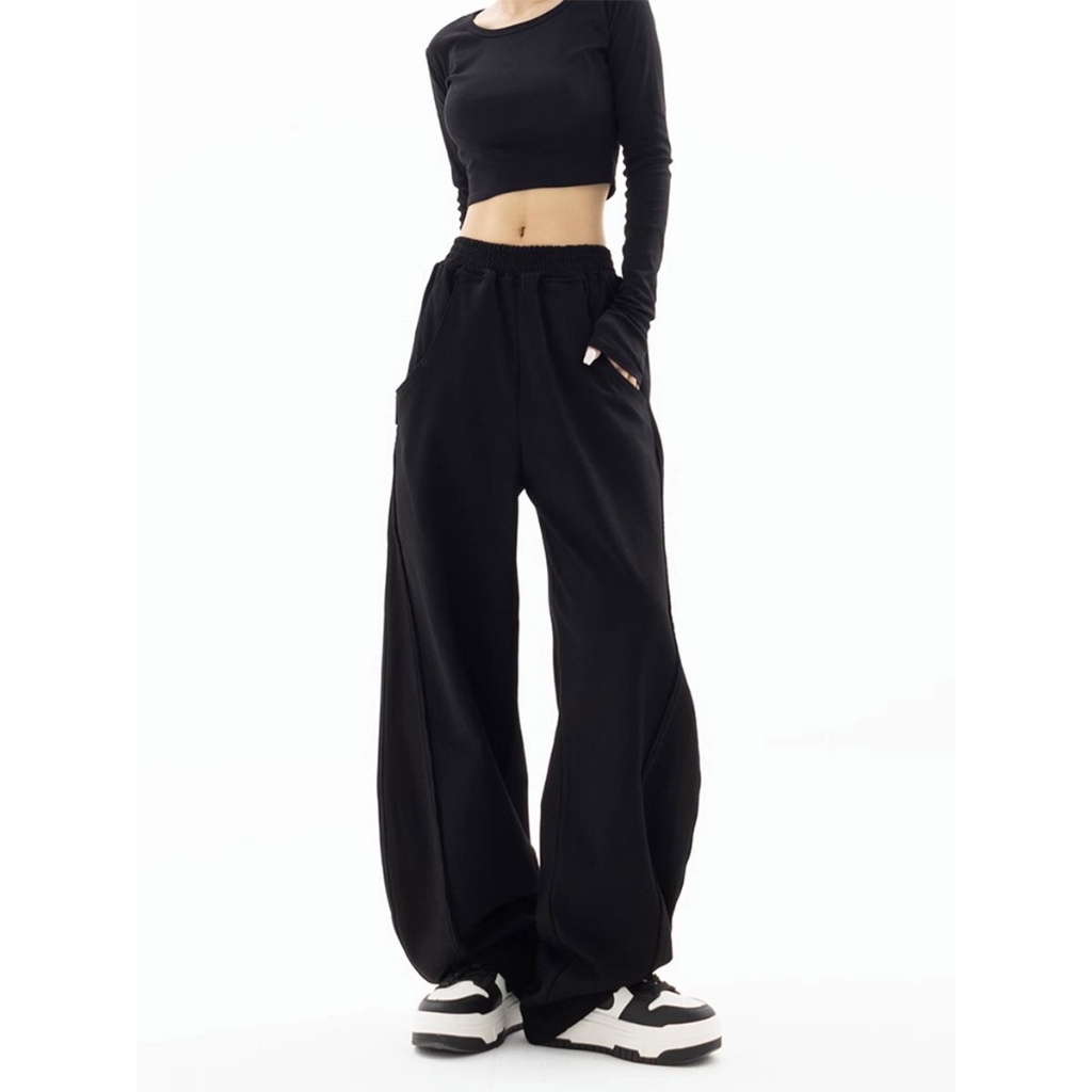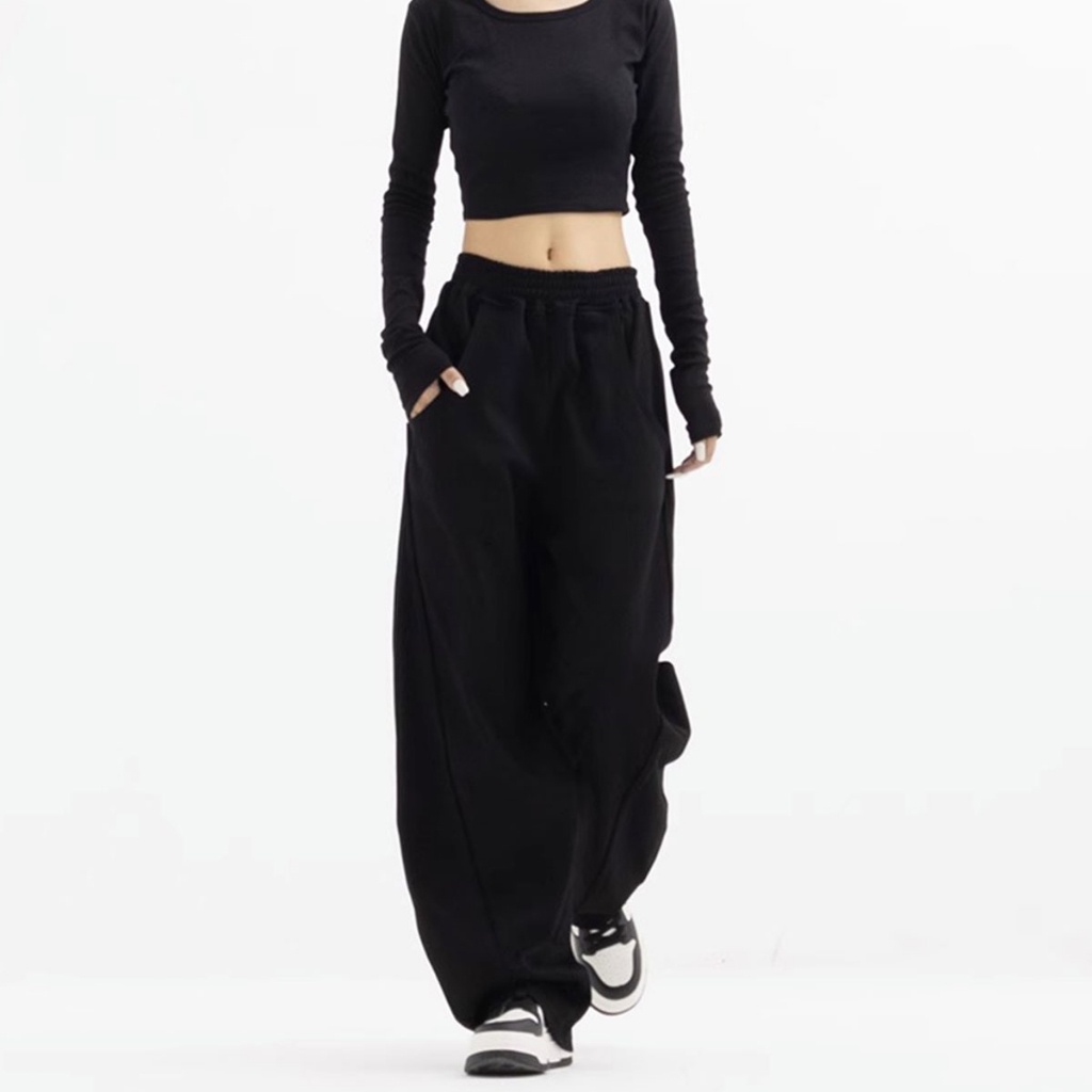 กางเกงวอร์มขายาวทรงสวย เนื้อผ้ายืดมีน้ำหนักเบา ใส่สบาย