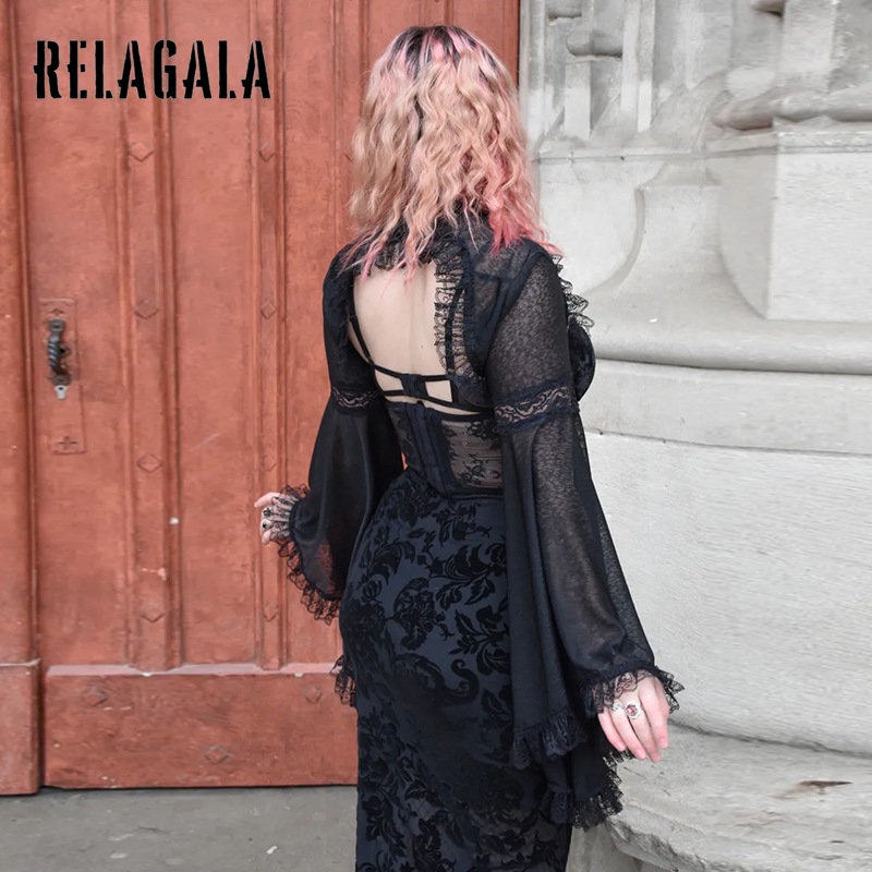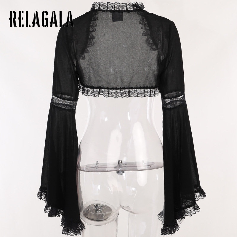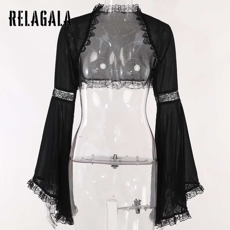 RelaGala Womens 2023 Fashion Sexy Solid Lace Flared Sleeve Cardigan