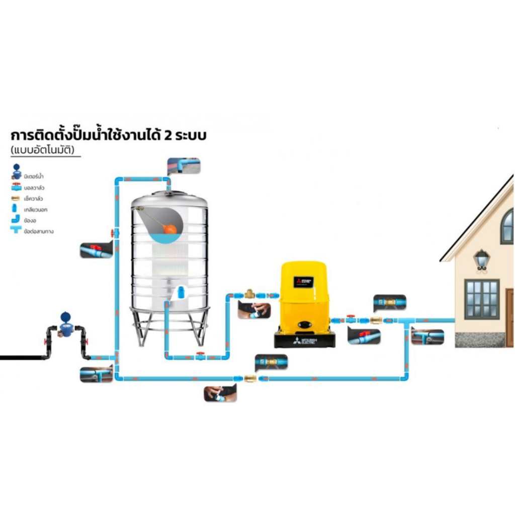 MITSUBISHI ปั๊มน้ำอัตโนมัติ (ถังกลม) รุ่น WP-105R WP-155R WP-205R WP-255R WP-305R WP-355R WP-405R WP-505R