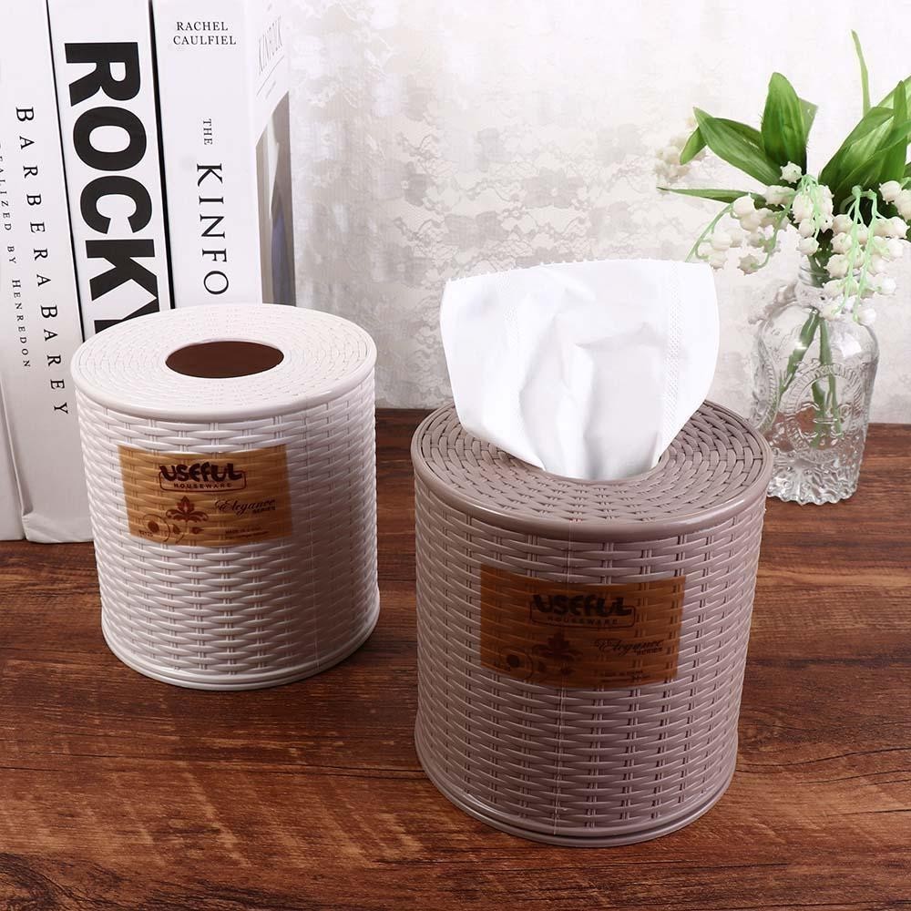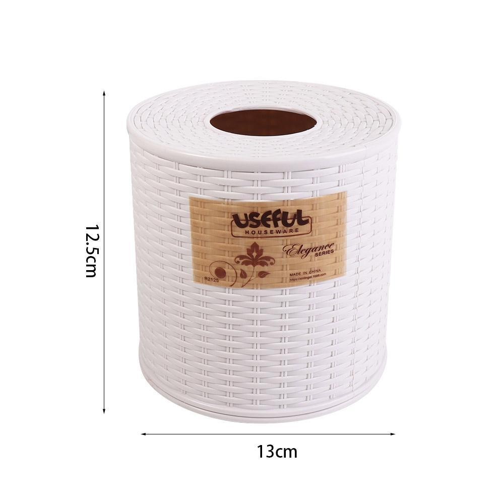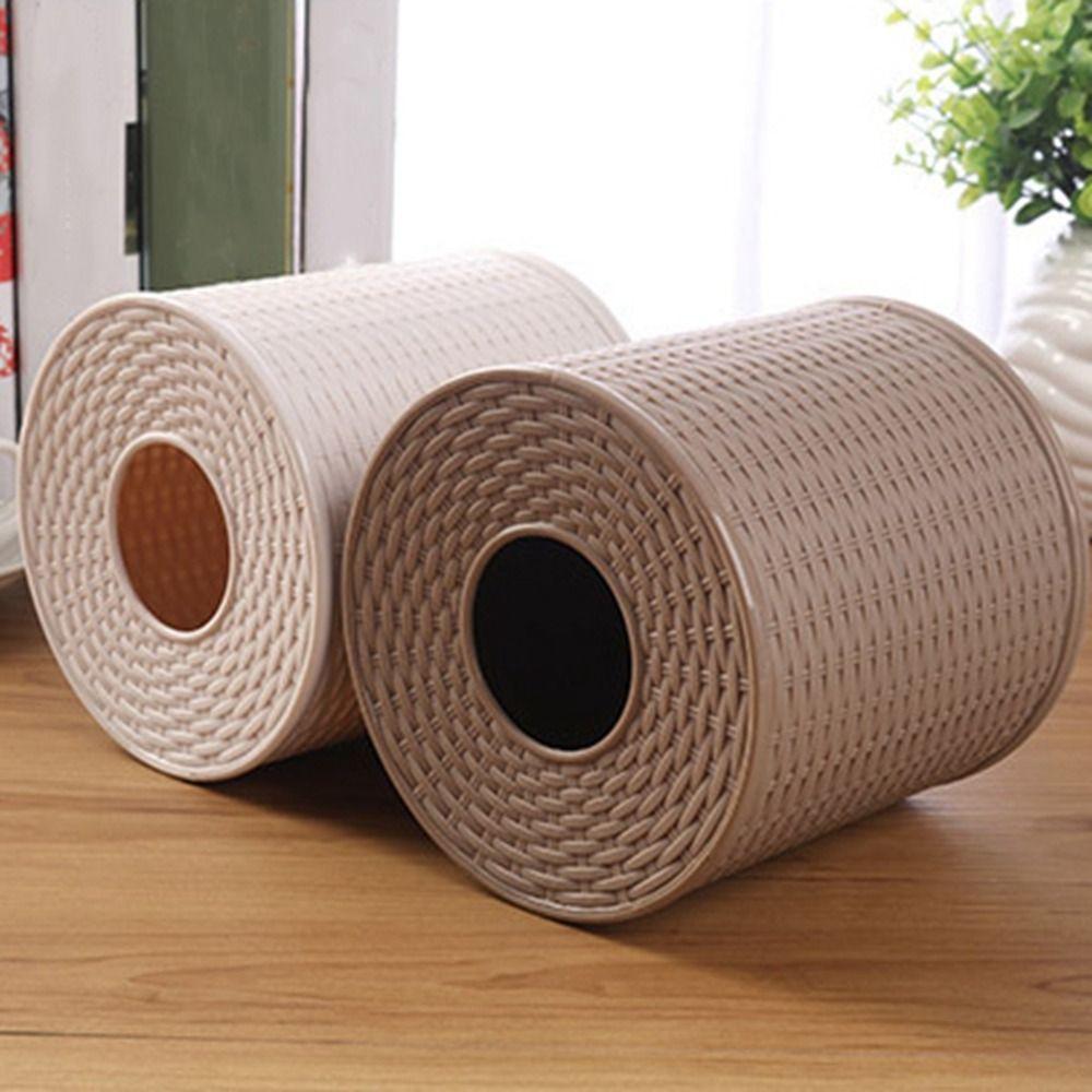 CORDELL กล่องทิชชู่หวาย, กล่องทิชชู่พลาสติกทรงกลมกันฝุ่น, การตกแต่ง Simpel ที่ใส่ม้วนกระดาษห้องนอนสีเบจ/สีน้ําตาลเข้ม