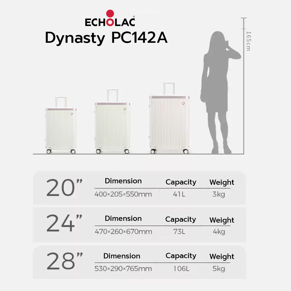 Echolac กระเป๋าเดินทางล้อลาก รุ่น Dynasty (PC142A) วัสดุ PC Makrolon เบาพิเศษ ล้อคู่ลื่น TSA [ดำ] Black