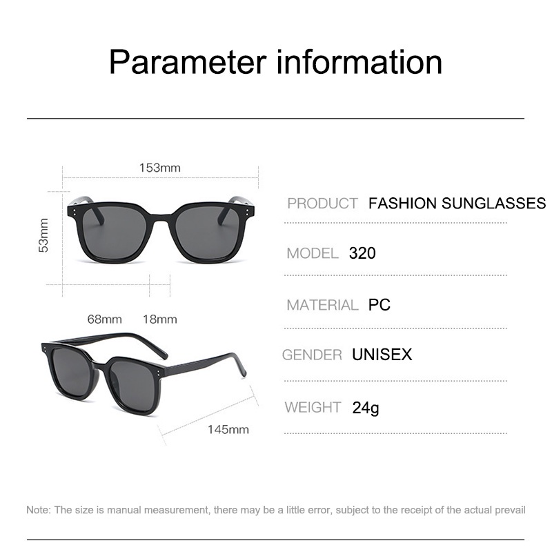 💌ใหม่ แว่นตากันแดดแฟชั่น กรอบสี่เหลี่ยม สีดํา ป้องกันรังสียูวี สไตล์เรโทร