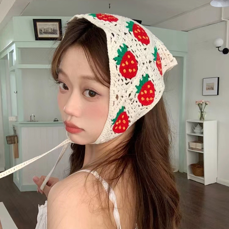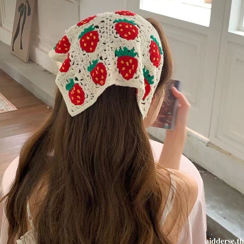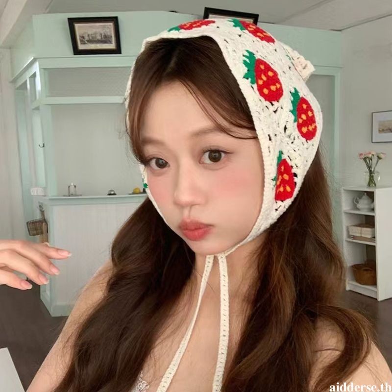 COD💌💌ผ้าคลุมผม ผลไม้ พิมพ์ กลวง ผ้าโพกหัว Insสไตล์เกาหลี แฟชั่นสําหรับผู้หญิง ถัก การออกแบบ Dopamine-Aidderse