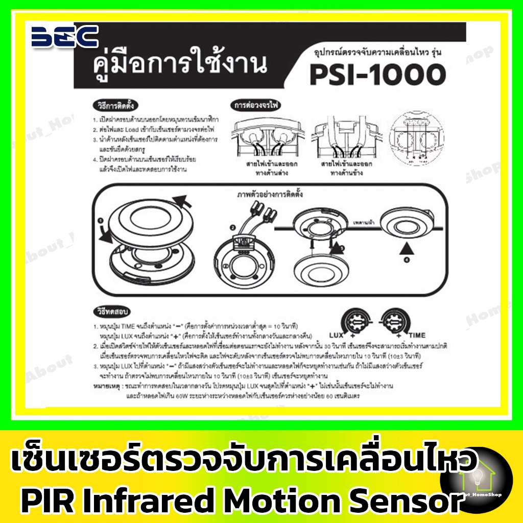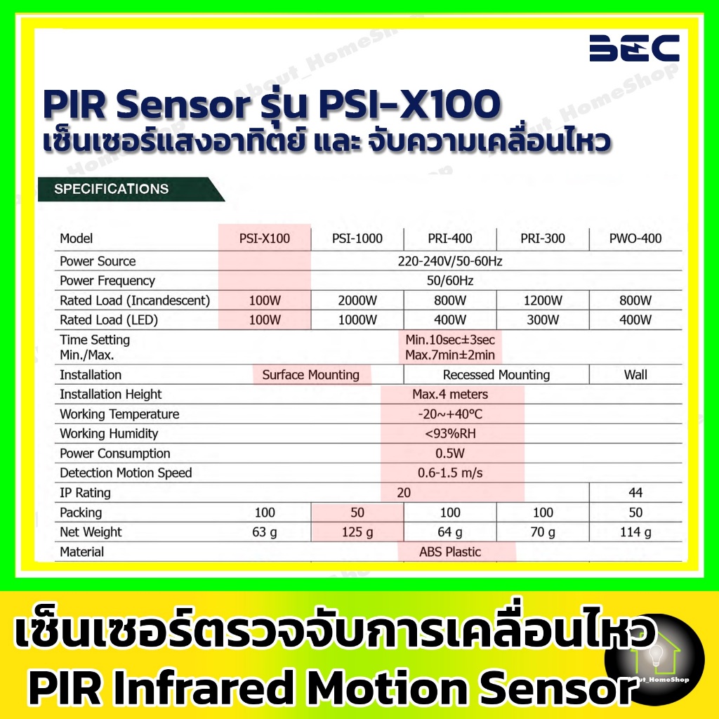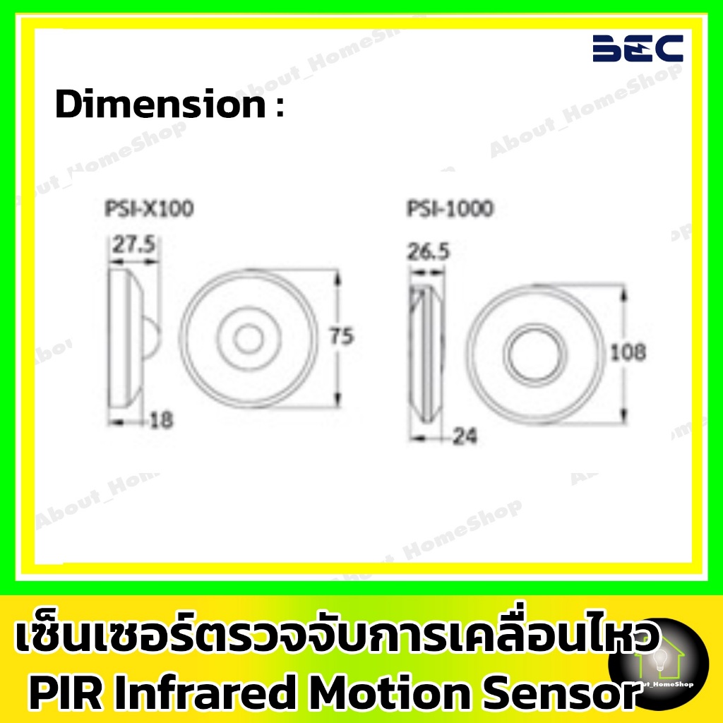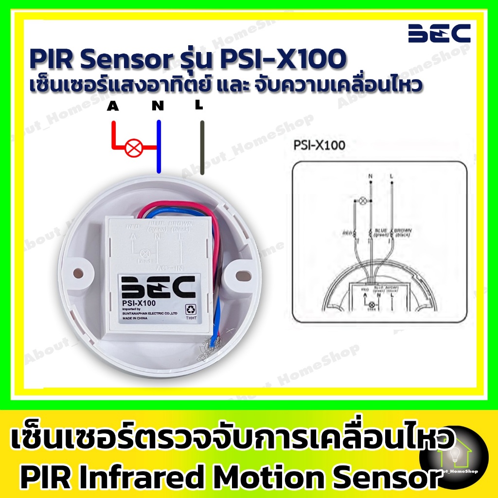 BEC เซ็นเซอร์ตรวจจับความเคลื่อนไหว PIR Sensor รุ่น PSI-X100 ( Max Load : 100 วัตต์ )