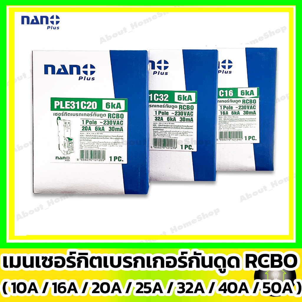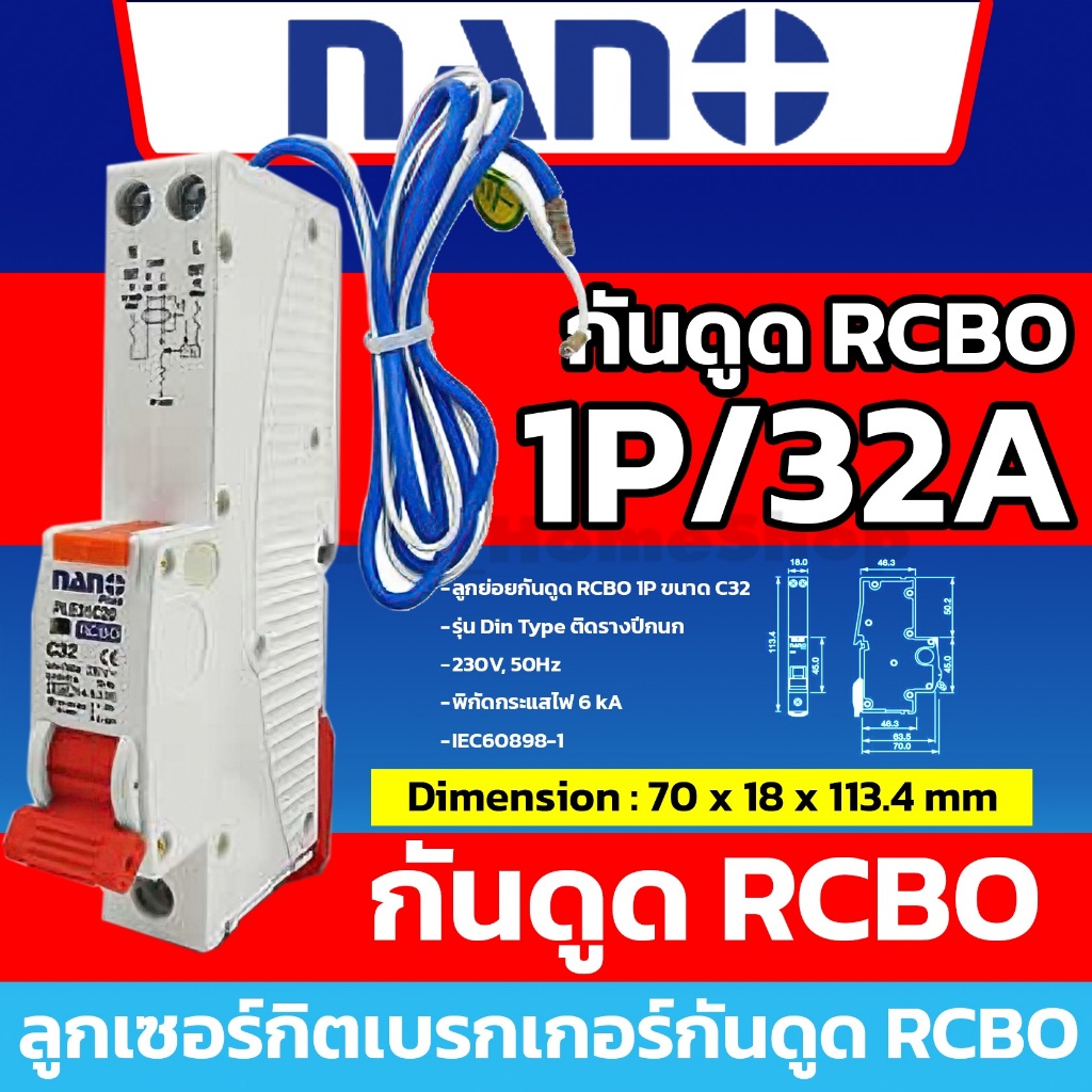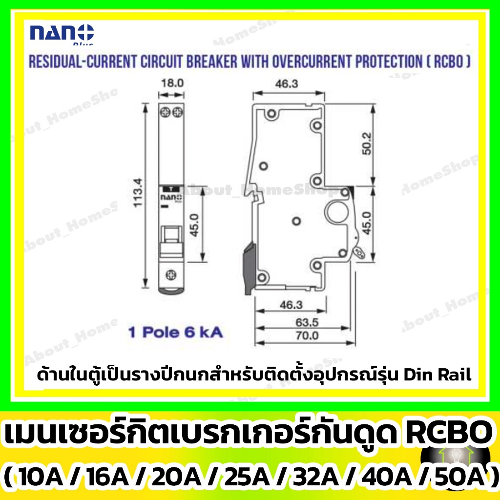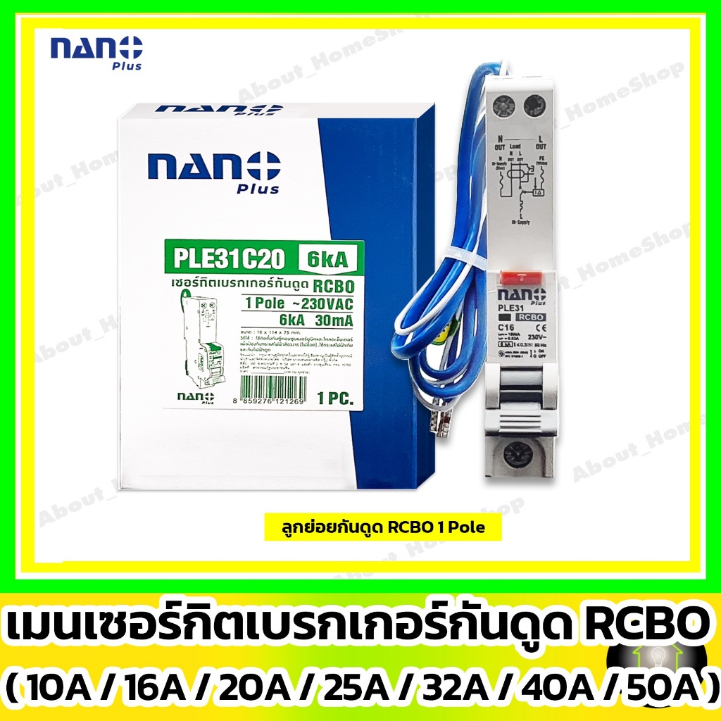 [ RCBO กันดูด ] NANO ลูกเซอร์กิตเบรกเกอร์กันดูด RCBO 1P : 10A 16A 20A 25A 32A รุ่น Din Rail รางปีกนก