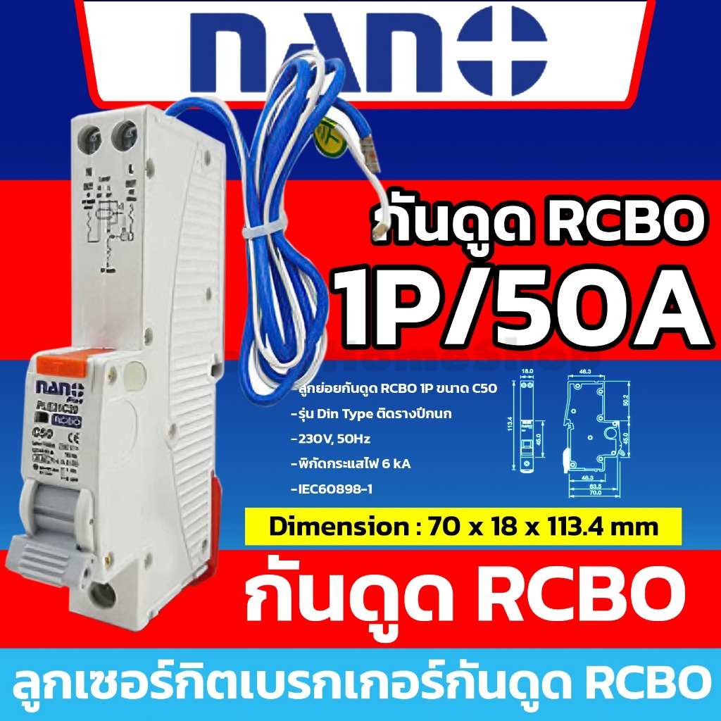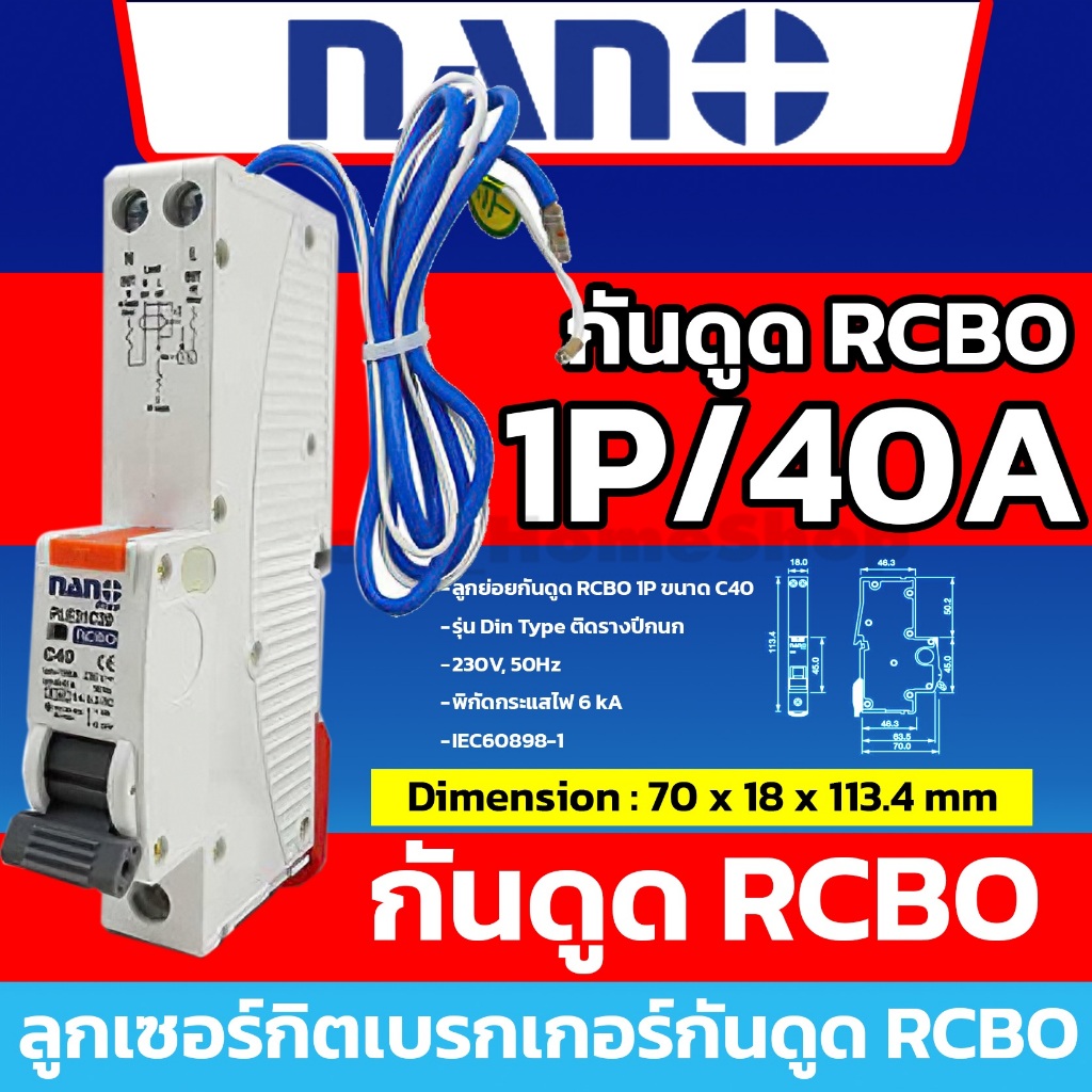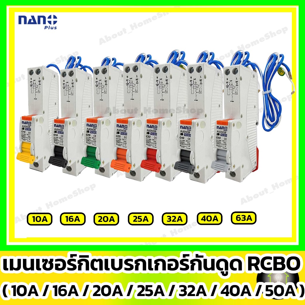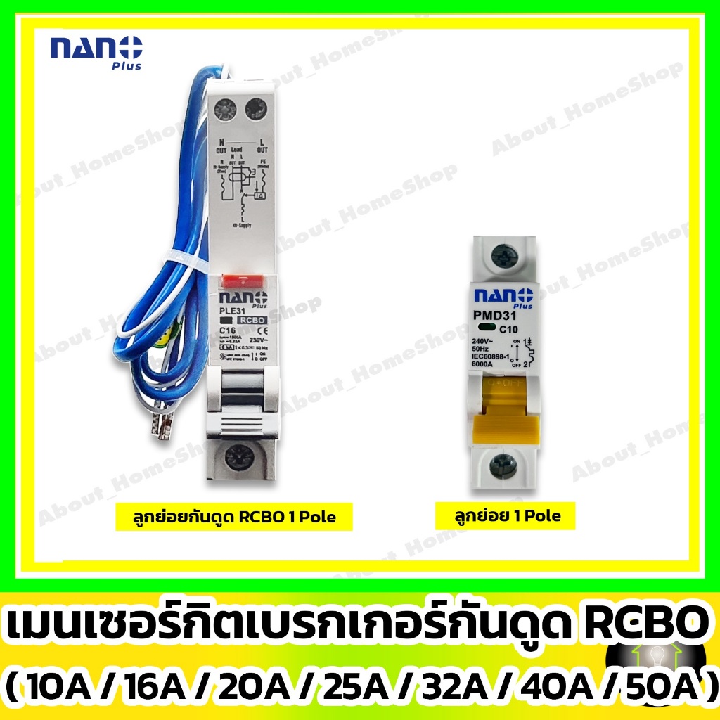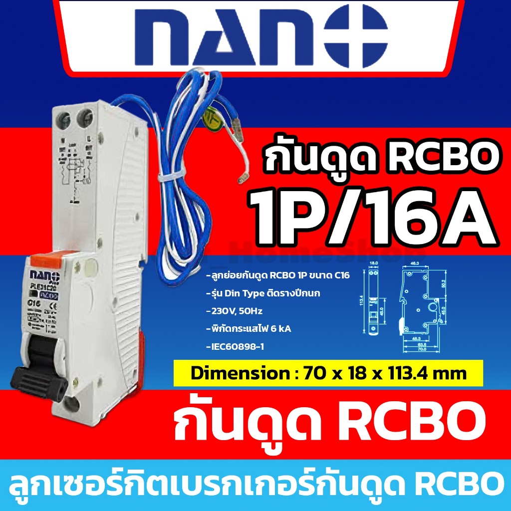 [ RCBO กันดูด ] NANO ลูกเซอร์กิตเบรกเกอร์กันดูด RCBO 1P : 10A 16A 20A 25A 32A รุ่น Din Rail รางปีกนก