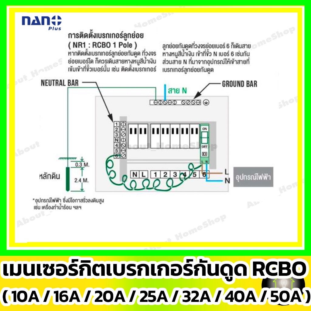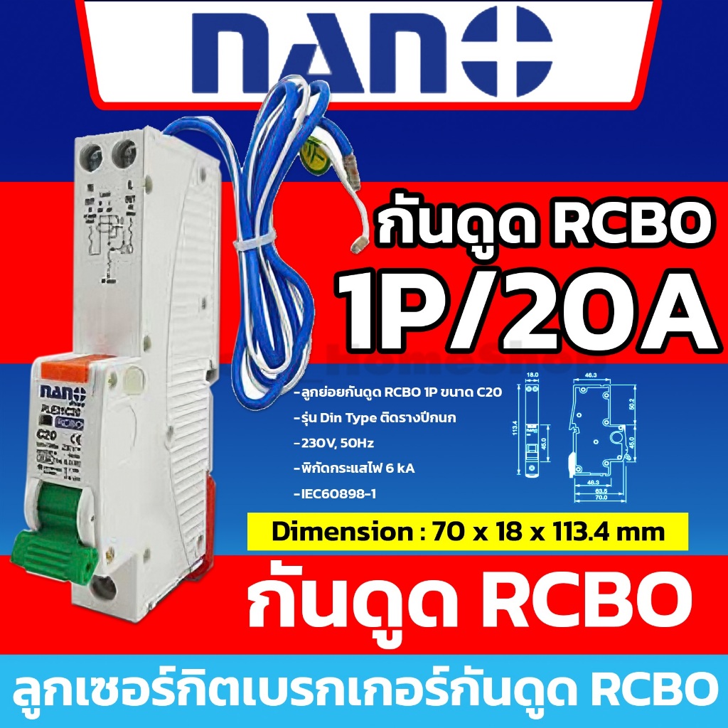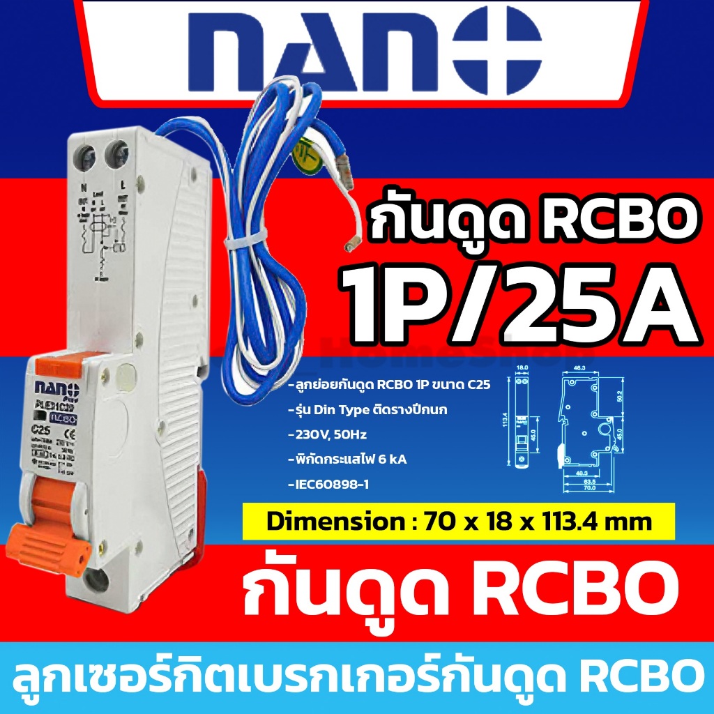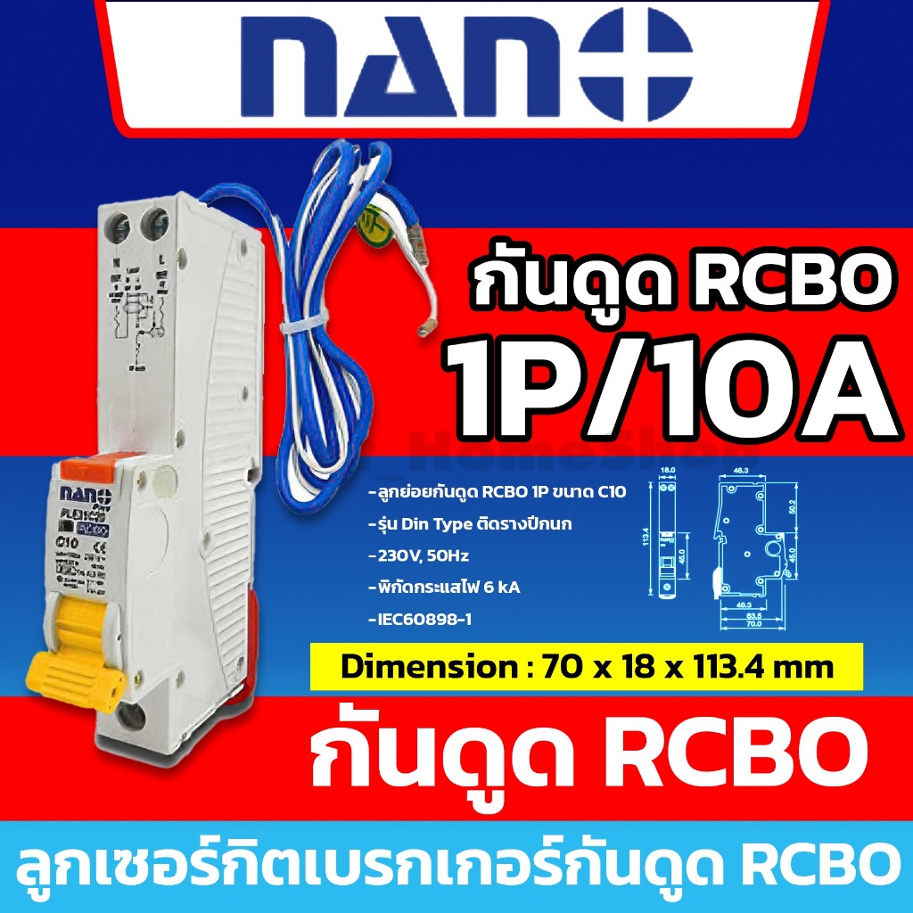 [ RCBO กันดูด ] NANO ลูกเซอร์กิตเบรกเกอร์กันดูด RCBO 1P : 10A 16A 20A 25A 32A รุ่น Din Rail รางปีกนก