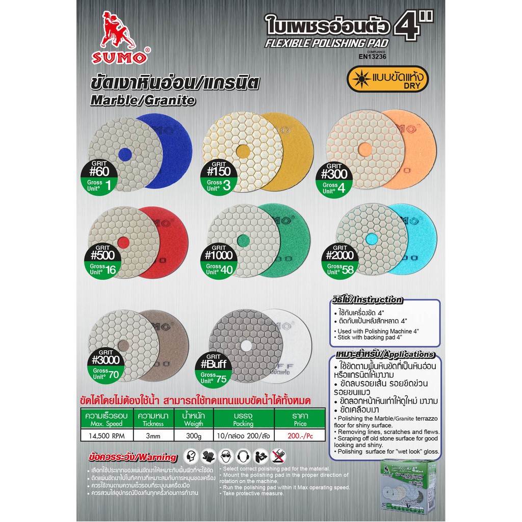 ใบเพชรอ่อนตัว SUMO ขนาด 4นิ้ว ใช้ขัดเงาหินอ่อน แกรนิต