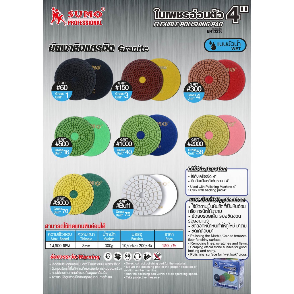 ใบเพชรอ่อนตัว SUMO ขนาด 4นิ้ว ใช้ขัดเงาหินแกรนิต
