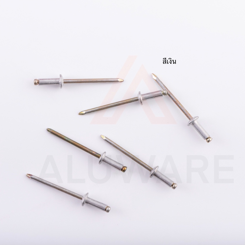 รีเวท ตราคนป่า แบ่งขาย100ตัว ขาว เงิน ชา ดำ 4-2/4-3/4-4/4-6 ตะปูยิง เม็ดย้ำ รีเวต ตะปูยิงรีเวท Rivet คนป่า Aluware AW100
