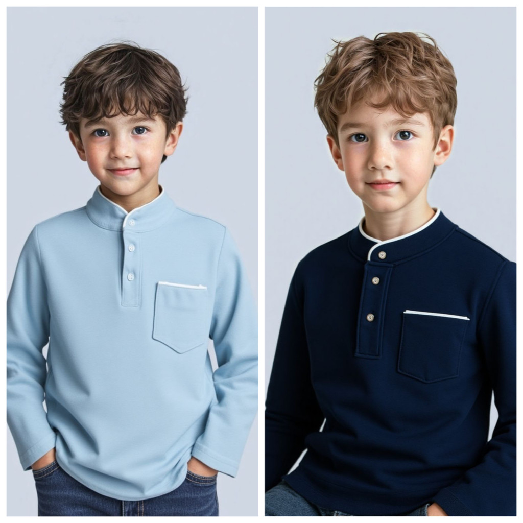 เสื้อโปโลแขนยาวสำหรับเด็กผู้ชาย จากผ้าฝ้าย สบายๆ ใส่ได้ในหลากหลายโอกาส