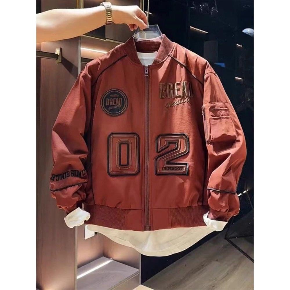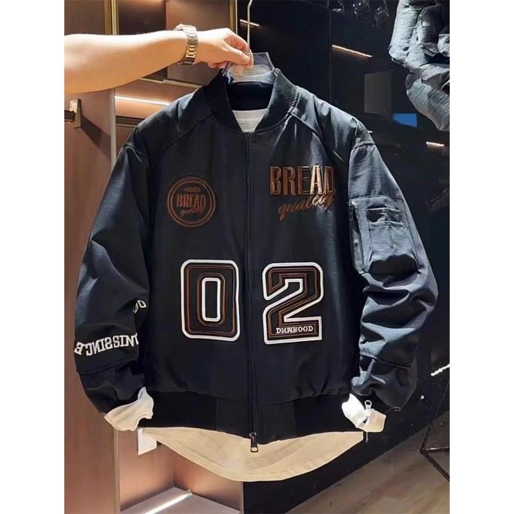 เยาวชนฤดูใบไม้ผลิเสื้อผ้าแฟชั่นถนนสวมเบสบอลปกผู้ชายสไตล์ฮ่องกงปักหล่อเที่ยวบินเสื้อสูทแจ็คเก็ตผู้ชาย