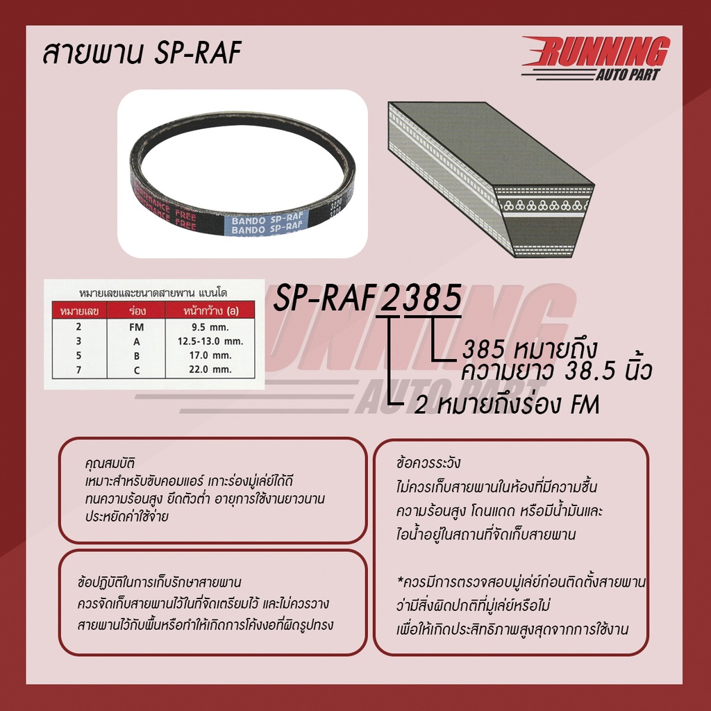 BANDO SP-RAF 2370 - 2500 l 9.5 x 940 - 1275 สายพาน สายพานร่องเรียบ !!ส่งทันที!!