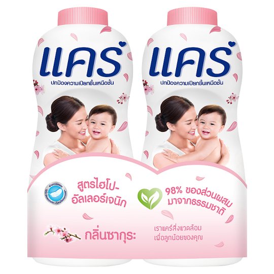 🔥*พร้อมส่ง*🔥 แคร์ แป้งฝุ่นโรยตัวสำหรับเด็ก สูตรไฮโป-อัลเลอร์เจนิก กลิ่นซากุระ 380กรัม x 2 ขวด Care Sakura Scent Hypo-All