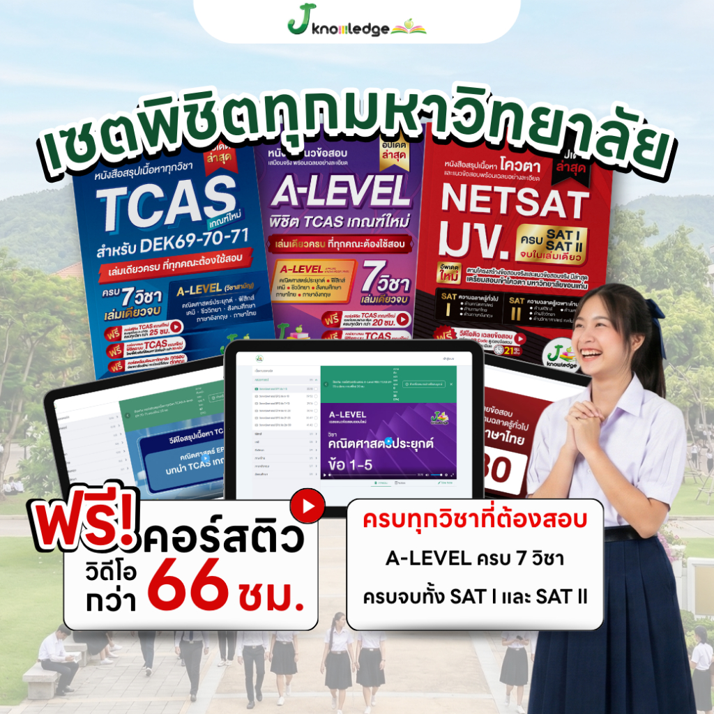 เซ็ตพิชิตทุกมหาวิทยาลัยชั้นนำ เกณฑ์ใหม่ล่าสุด พร้อมค อร์สติวสรุป + เฉลยข้อสอบ รวมกว่า 66 ชม.