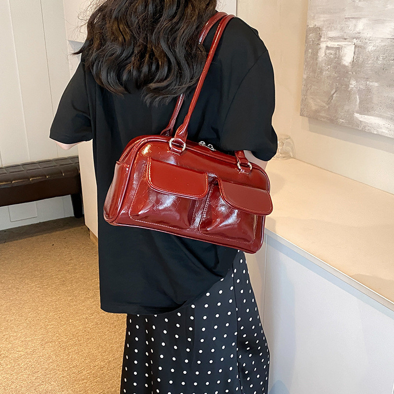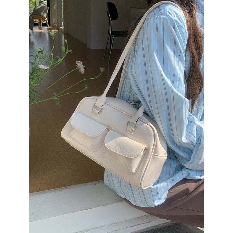 กระเป๋าใต้วงแขนแฟชั่นใหม่สําหรับสาวเวอร์ชั่นเกาหลีอินเทรนด์ความจุขนาดใหญ่ Tote สีทึบสบายๆอเนกประสงค์ความจุขนาดใหญ่มือถือ Commuting