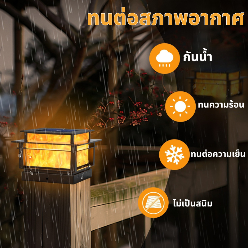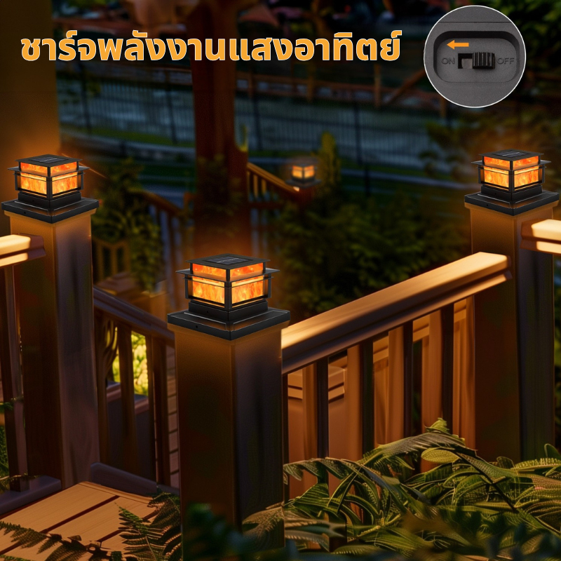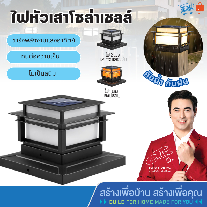 โคมไฟหั วเสา โคมไฟหัวเสาโซล่าเซลล์ โคมไฟโซล่าเซลล์ โคมไฟทรงเหลี่ยม ใช้พลังงานแสงอาทิตย์ ไฟLED