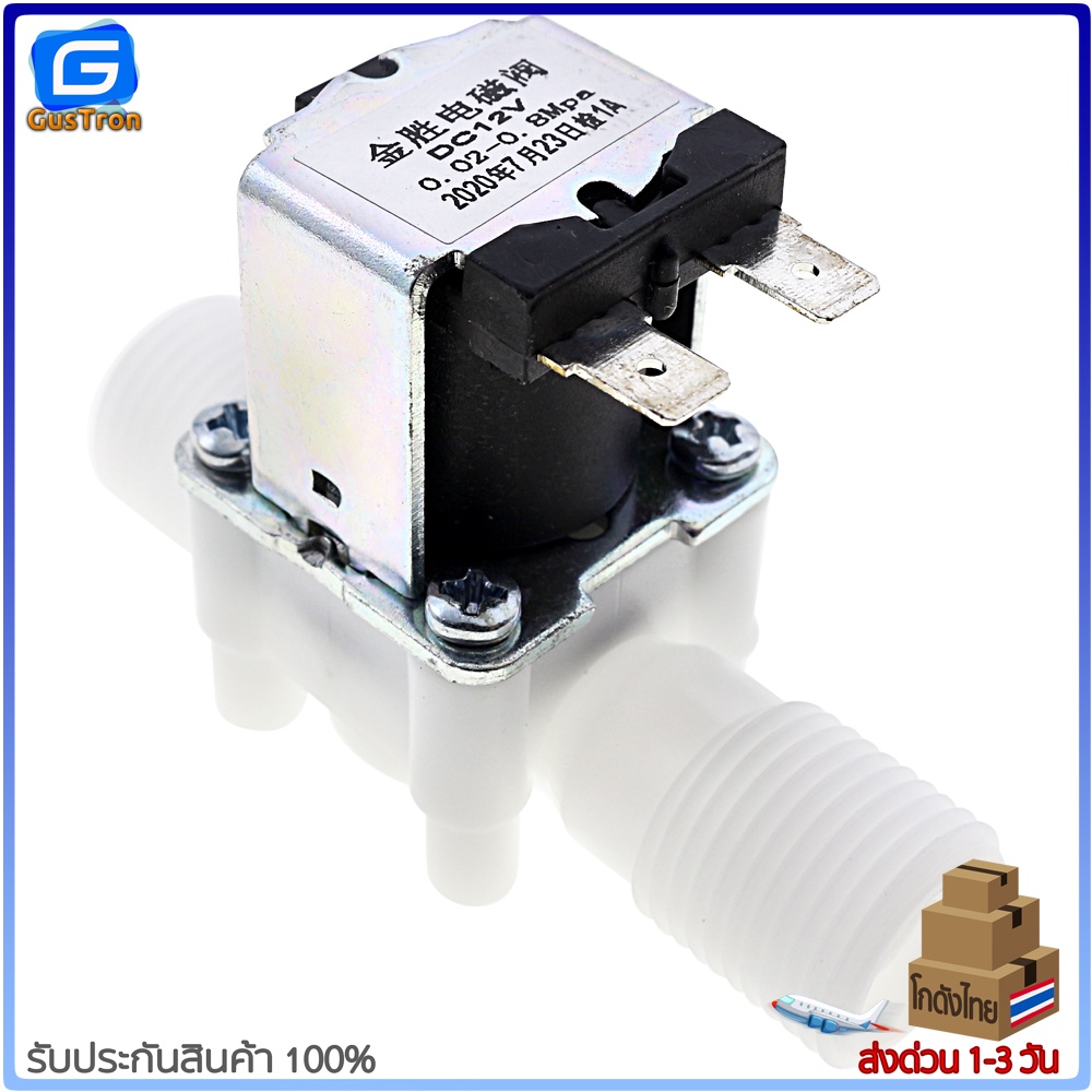 โซลินอยด์วาล์วพลาสติก วาล์วไฟฟ้า วาล์วน้ำ 1/2นิ้ว 4หุน แบบปกติปิด 220V/12V/24V